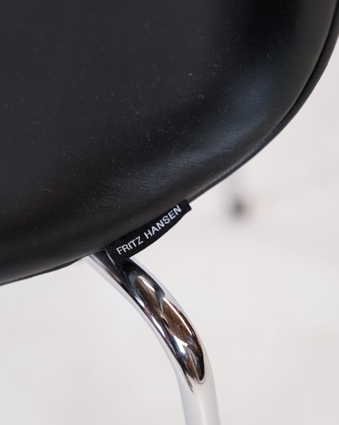 Stolene er fra 2020 med originale labels black grace leather, som er et højkvalitets og slidstærkt materiale. Det sorte læder giver stolene et slankt og sofistikeret look, der komplementerer deres enkle og elegante design.