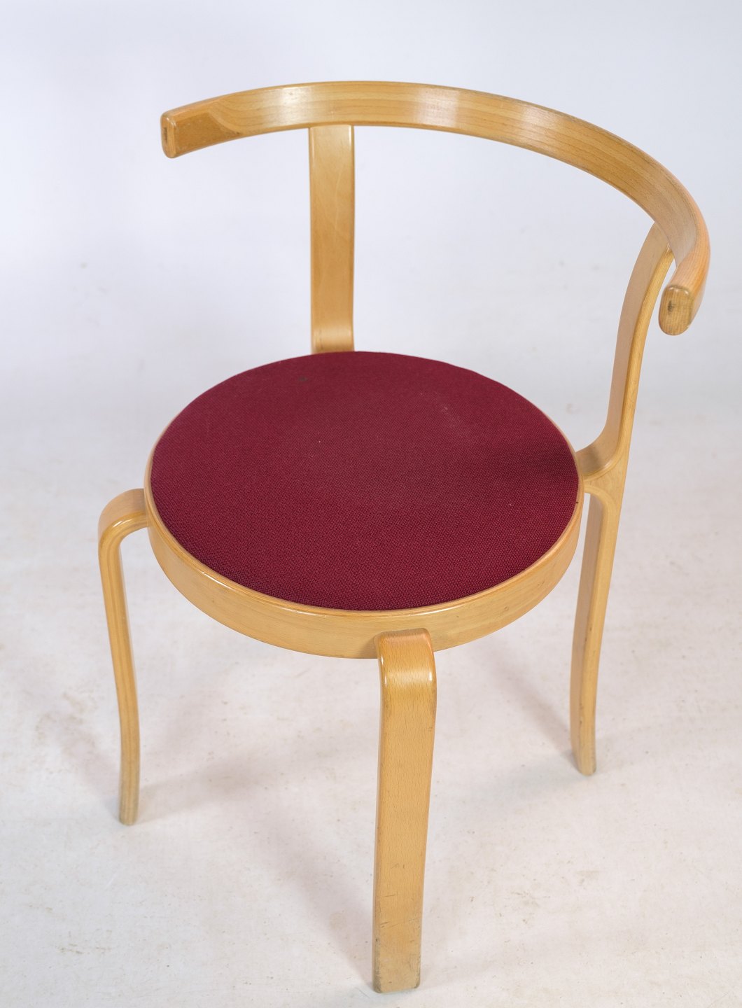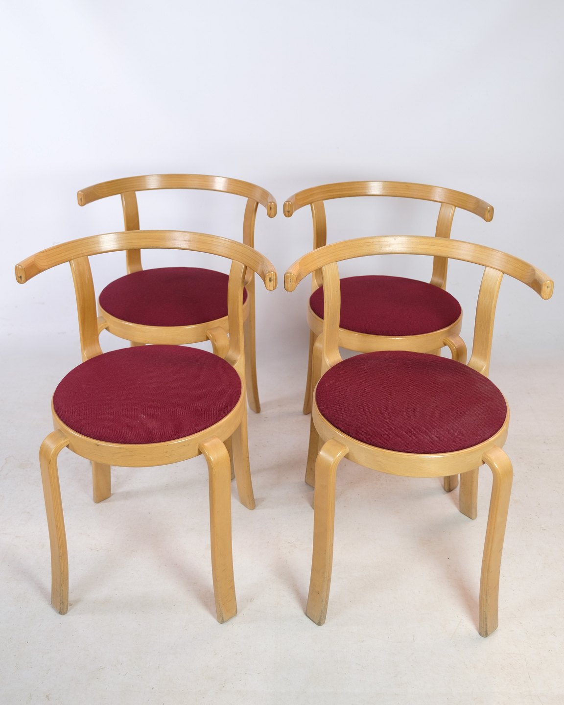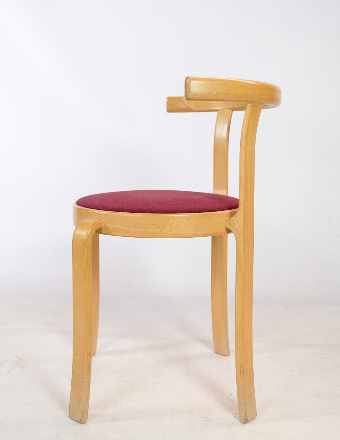 Set of 4/6/8/10/12 chairs, model 8000 Series, designed by Rud Thygesen & Johnny Sørensen in beech wood with red fabric made by Magnus Olesen. The chairs have been produced by Magnus Olesen since 1981