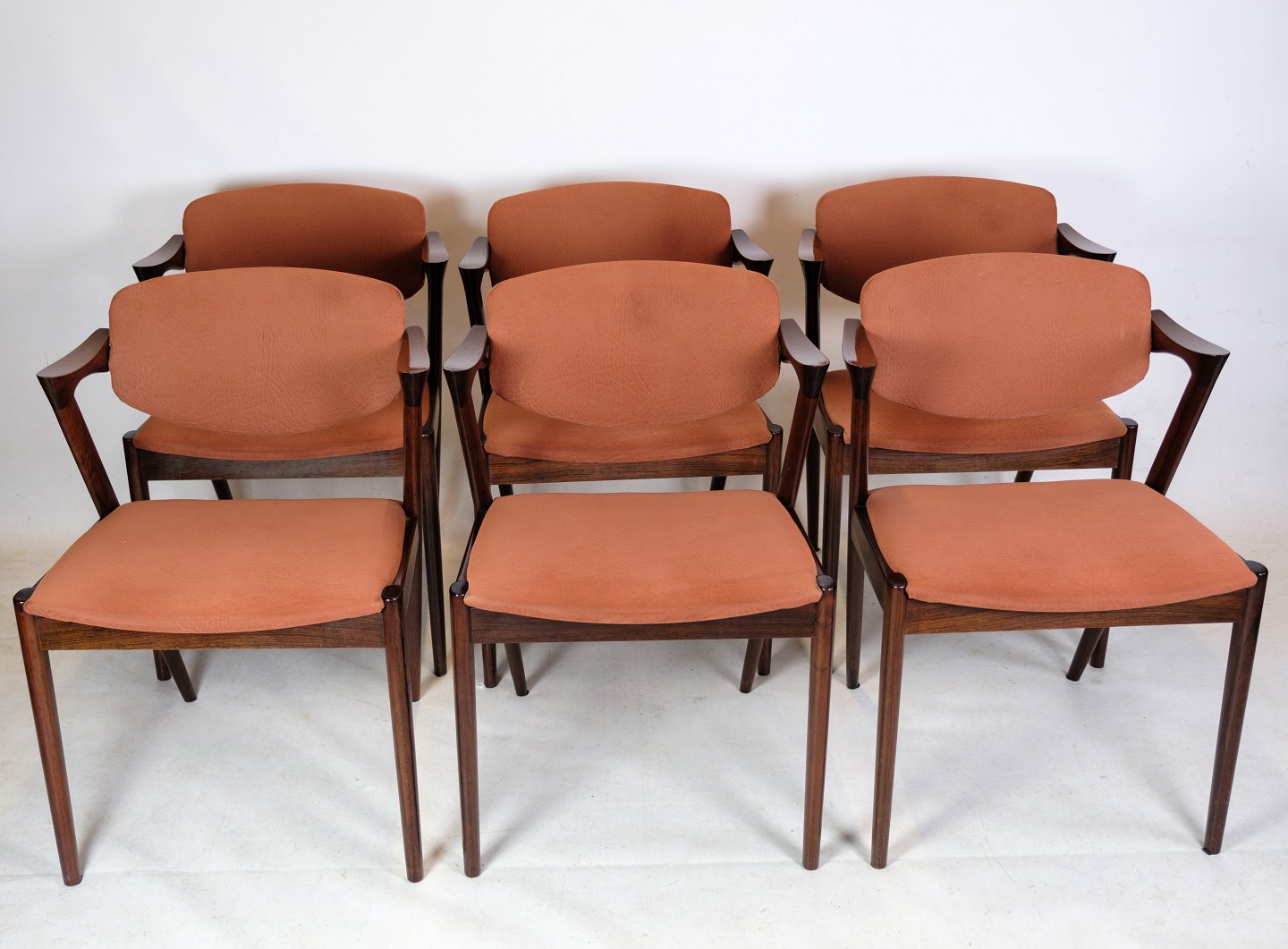 SolgtDette sæt af 6 spisestuestole er en fremragende repræsentation af den tidløse og elegante stil, der kendetegner dansk møbeldesign fra midten af det 20. århundrede. Stolene er model 42, designet af den anerkendte danske designer Kai Kristiansen og fremstillet hos Schou Andersen i 1960'erne.