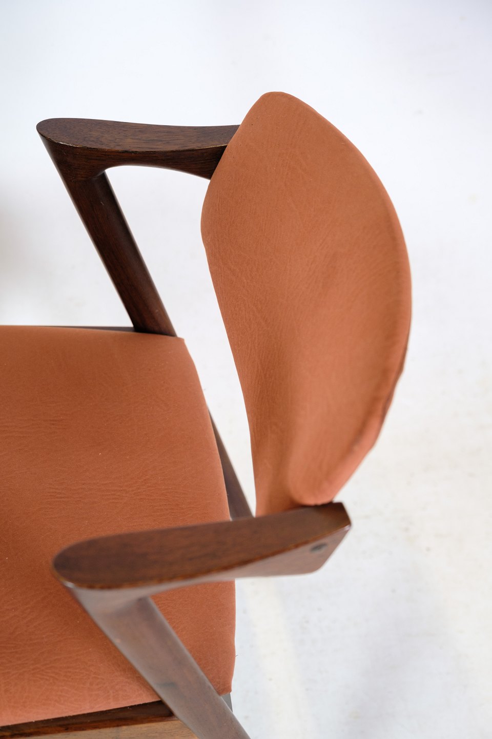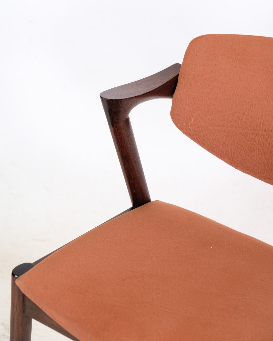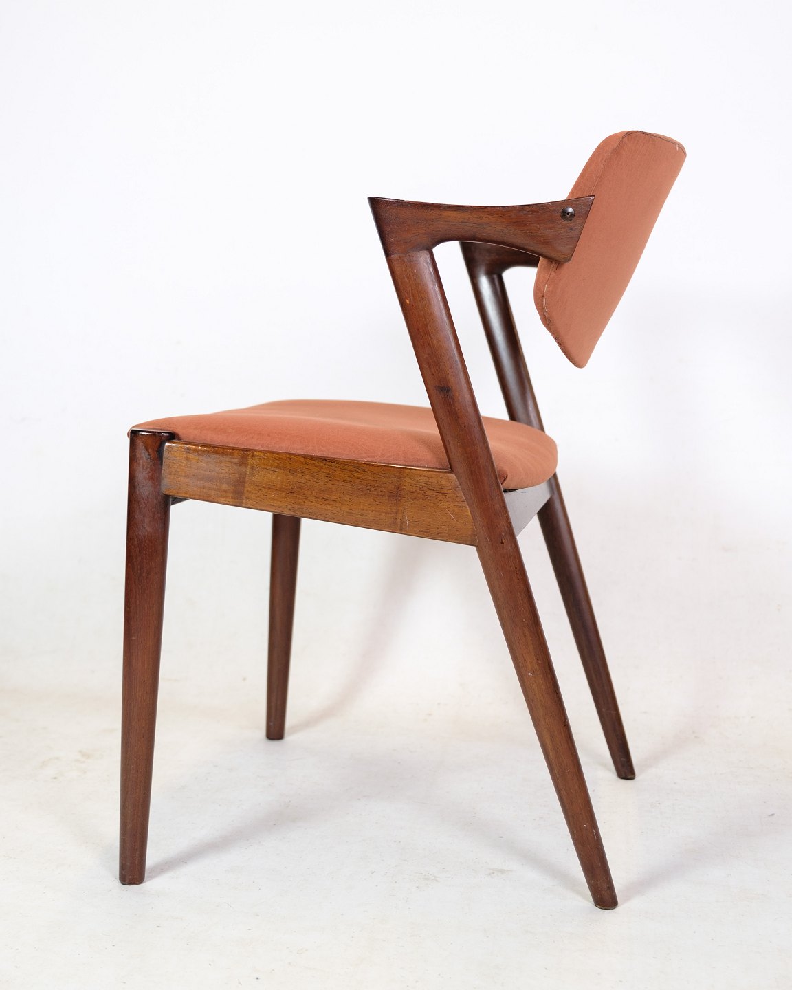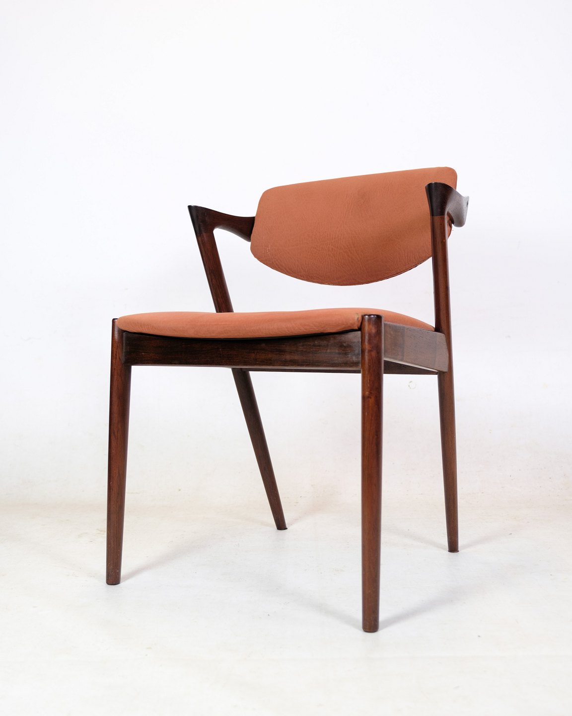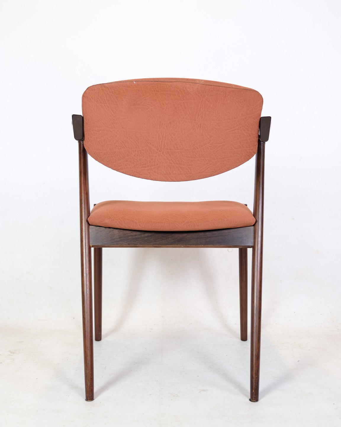 Stolens ryglæn er lavet af palisandertræ, der er kendt for sin varme og smukke farve. Træets naturlige årer og mønster giver hver stol sit eget unikke udseende. Stolens sæde er også lavet af palisandertræ og har en smuk, afrundet form, der giver en behagelig siddeoplevelse.