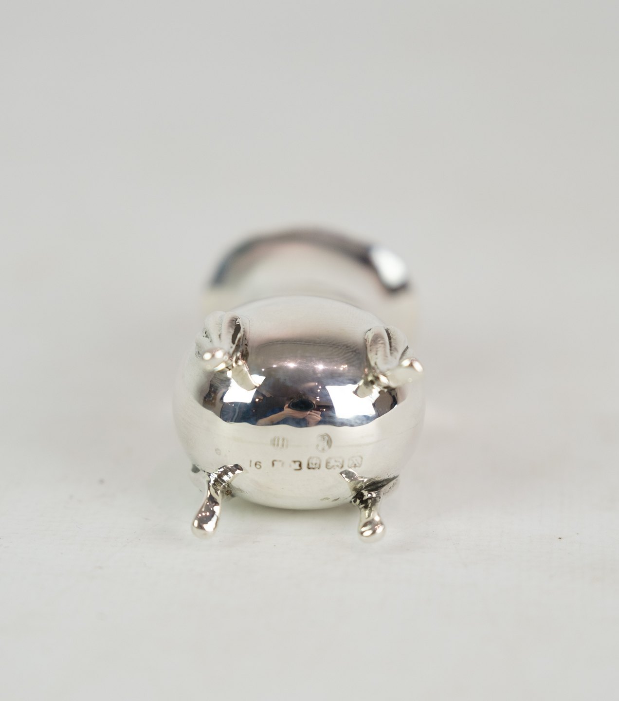 Enkel saltbøsse på fødder, stemplet tretårnet med mesterstempler nummeret 16. Vægt: 38g