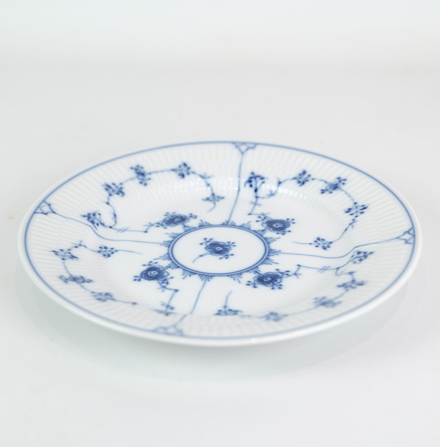 SolgtRoyal Copenhagen Musselmalet Riflet frokosttallerken er en smuk og klassisk del af den ikoniske Musselmalet Riflet-serie, der har prydet bordene i generationer, netop denne type tallerken er af ældre dato.