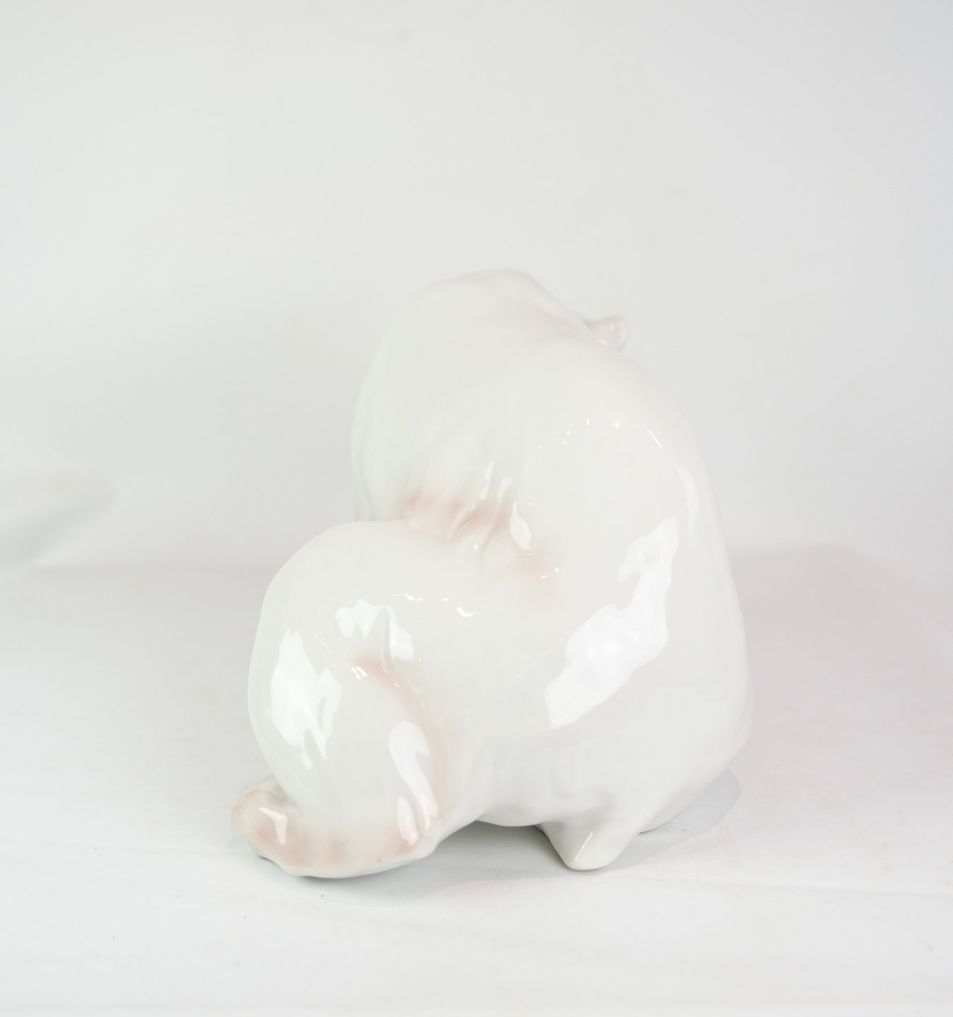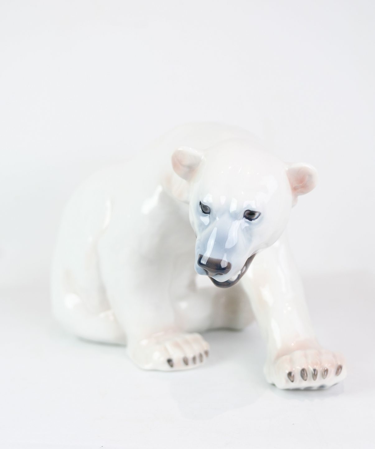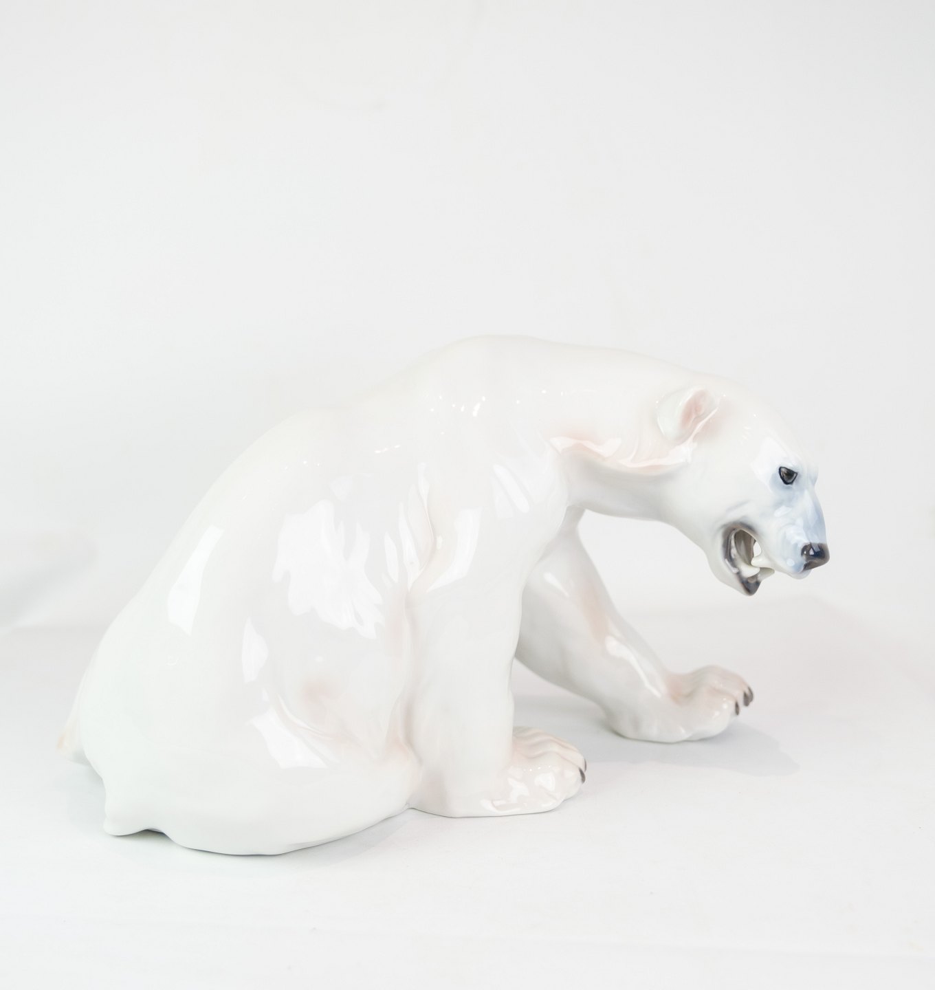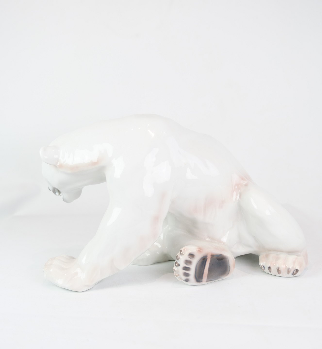 Bing & Grøndahl (B&G) The Polar Bear with number 1857, also known as "Big Polar Bear" or "Knud Kyhn Polar Bear," is an impressive porcelain figure designed by the renowned Danish ceramist Knud Kyhn. This figure is often related to Bing & Grøndahl and Royal Copenhagen, as Royal Copenhagen later took over Bing & Grøndahl.