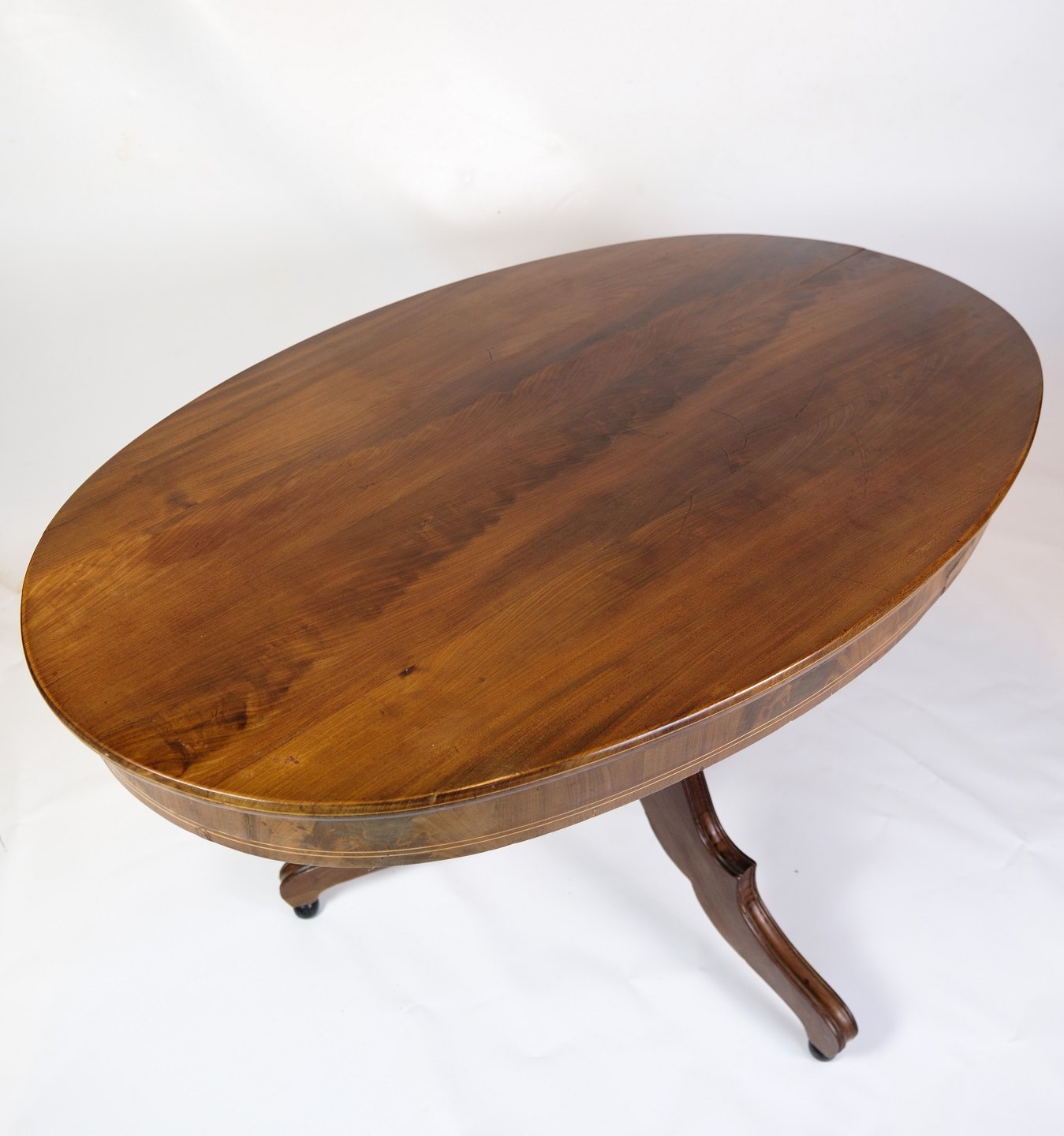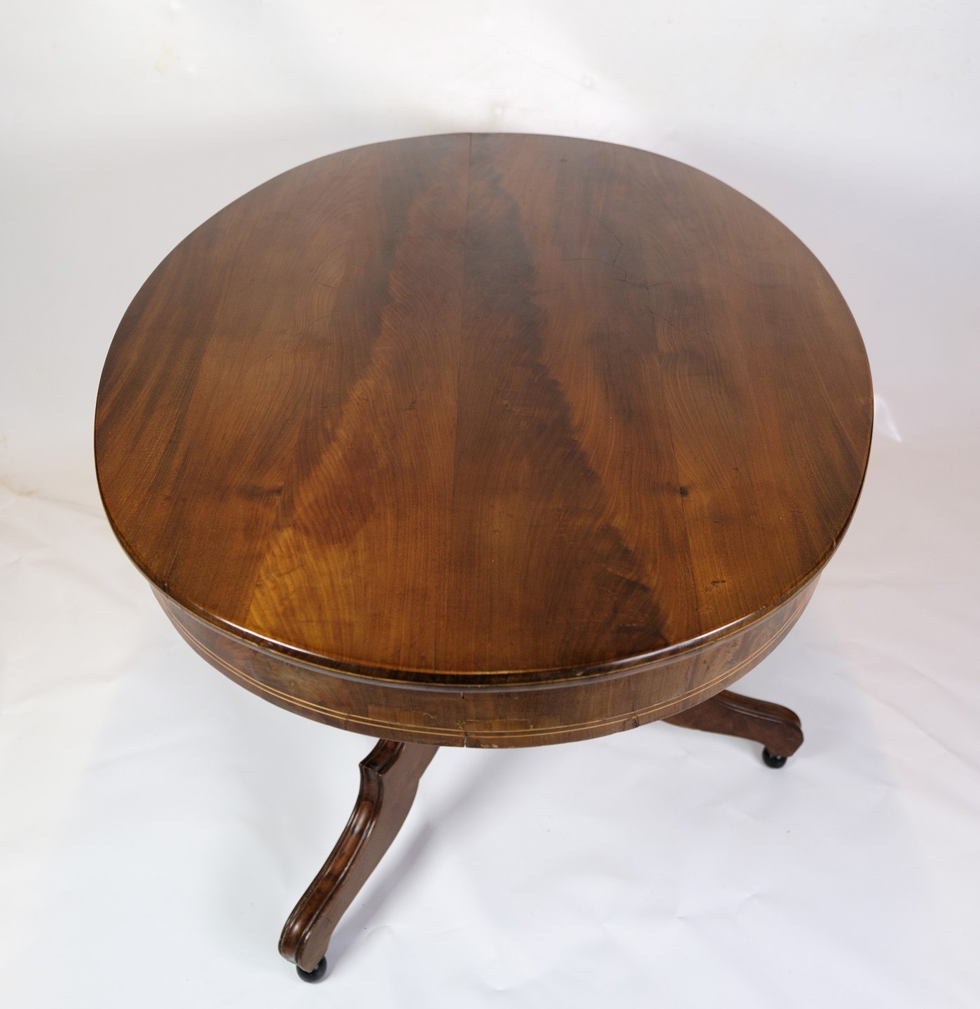 Round Late Empire mahogany dining table with 3 legs from around the 1840s.