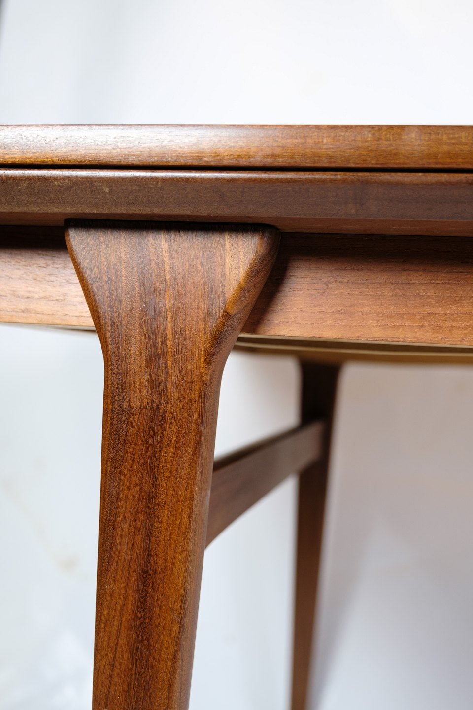 Dining table of Danish design with Dutch extension made in teak wood by Vejle Møbelfabrik from around the 1960s.