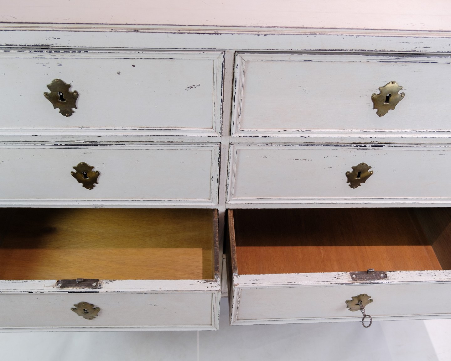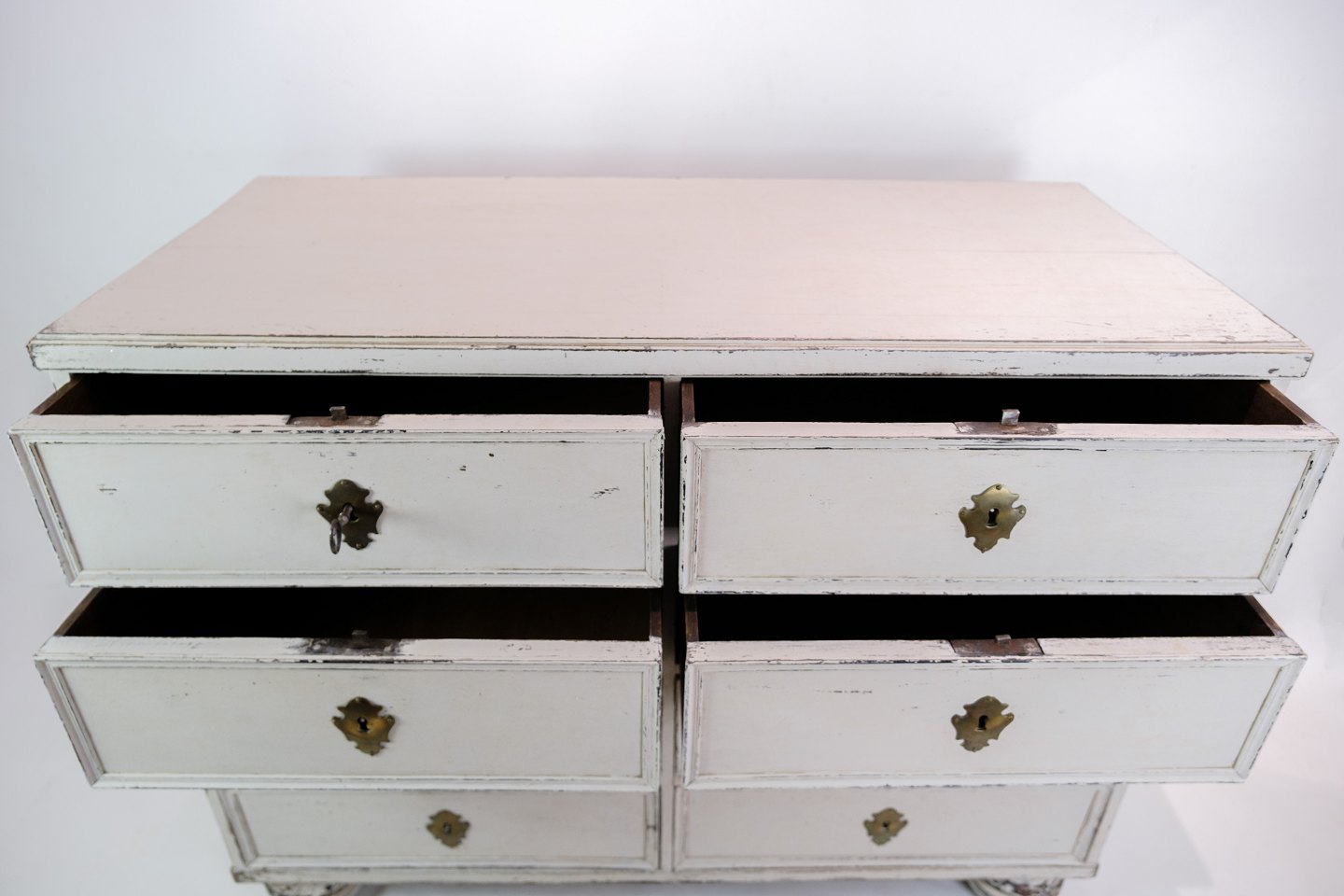Dive into the past with this Swedish chest of drawers in the enchanting Gustavian style from around the 1780s. The subtle design, characterized by the simple elegance of the period, creates an atmosphere of historical sophistication. Every curve and detail is carefully crafted to bring an antique treasure into your home.