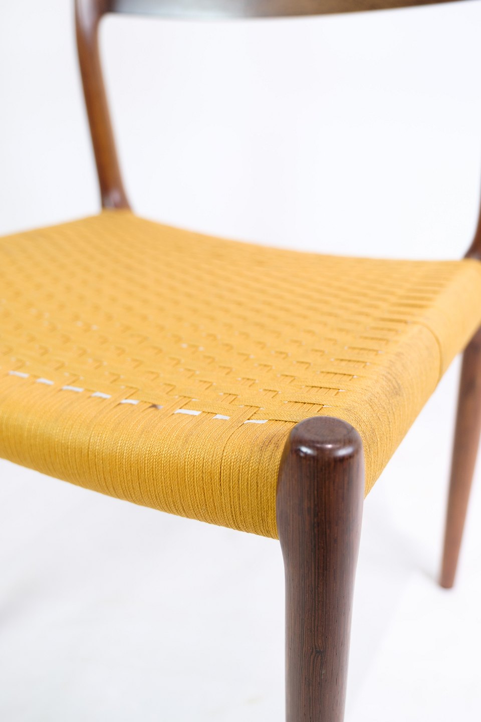 Dining chair, Model 79, designed by Niels O. Møller and produced by J.L. Møller Møbelfabrik around 1960. These chairs represent an iconic part of Danish furniture design history, where Niels O. Møller is known for his focus on craftsmanship and aesthetics. The Model 79 concept combines elegance and comfort.