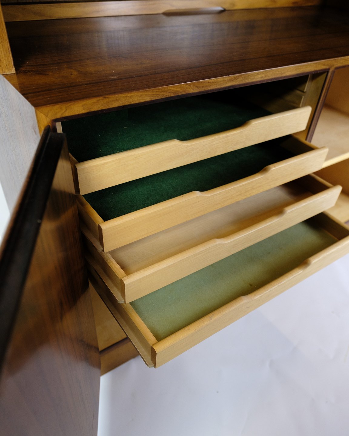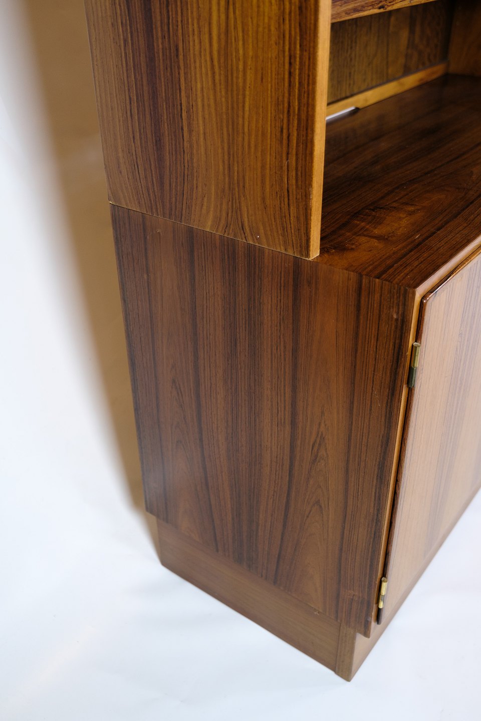 This bookcase in rosewood from Hundevad is an impressive example of Danish furniture design from the 1960s. Hundevad, a renowned furniture manufacturer known for their high quality and timeless design, is behind this piece of furniture.