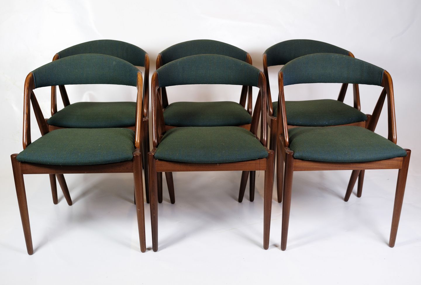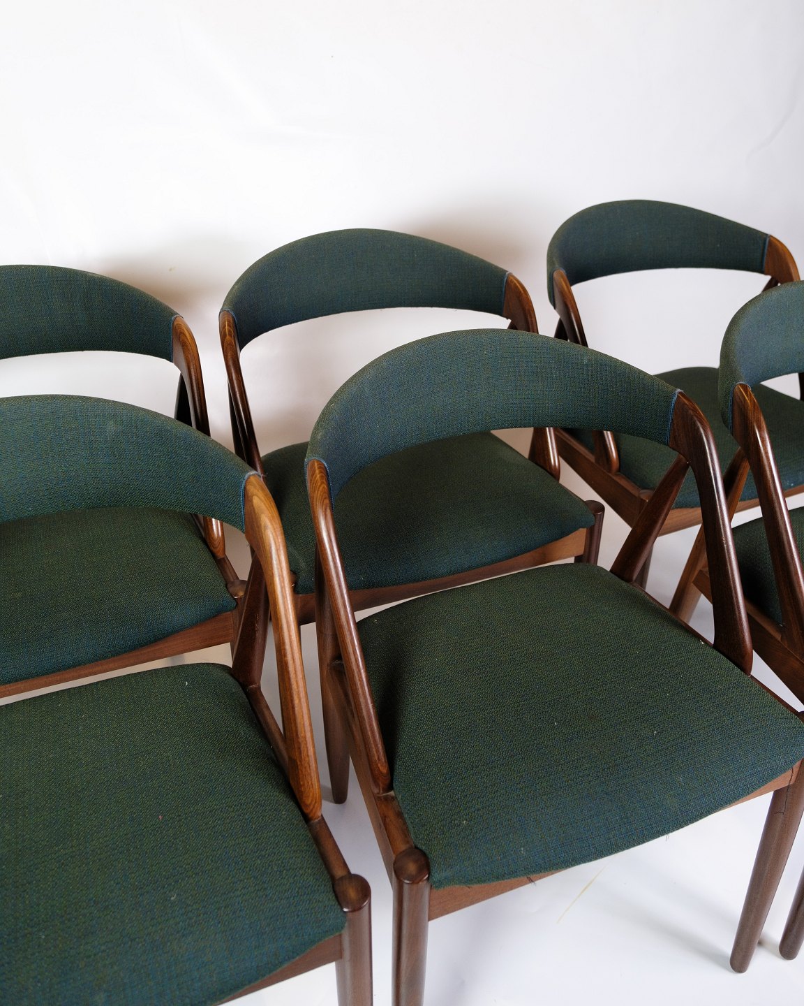 Sættet af seks spisebordsstole, model 31, er et enestående eksempel på tidløst dansk møbeldesign fra 1950'erne. Designet af den anerkendte møbeldesigner Kai Kristiansen, repræsenterer disse stole den karakteristiske elegance og funktionalitet, der kendetegner hans arbejde.