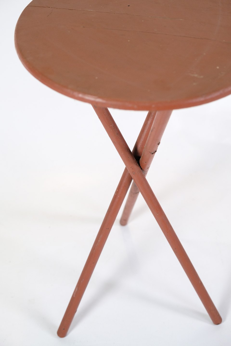 The red painted wood adds a nice contrast to the patinated surface, giving the table a unique and eye-catching look. Its timeless design makes it a beautiful and functional piece of furniture that can be used as a side table in the living room, a bedside table or even as a decorative accent in any room.
