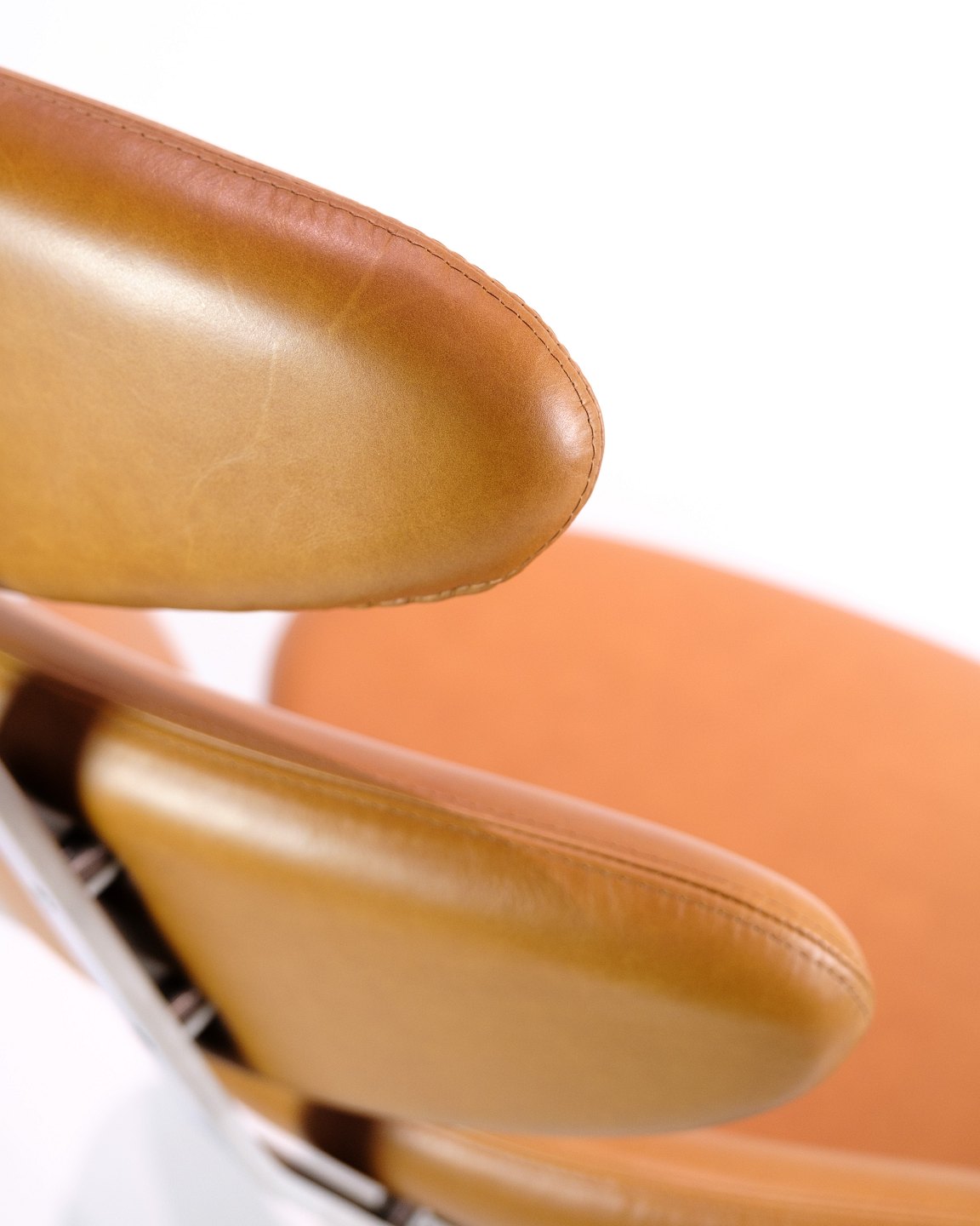 Please contact us for price informationThe Corona recliner, model EJ 5, upholstered in Walnut Elegance leather, designed by Poul M. Volther for Erik Jørgensen in the 1960s. The chair is known for its unique shape and comfort. Poul M. Volther was a pioneer in Danish furniture design, and Erik Jørgensen is known for his focus on quality and craftsmanship.