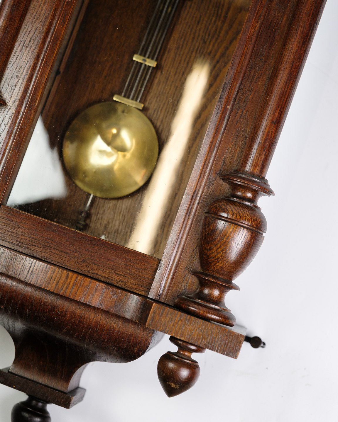 Antique wall clock from the 1920s, manufactured by Junghans in oak.