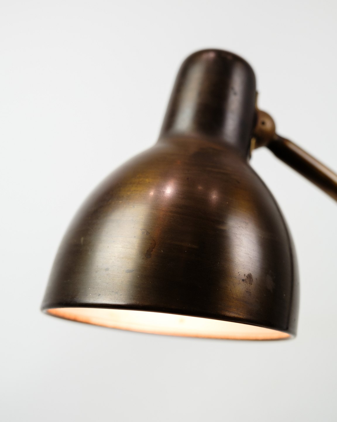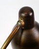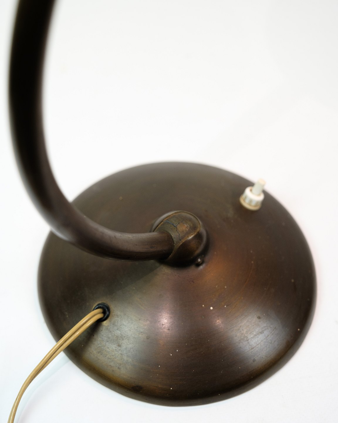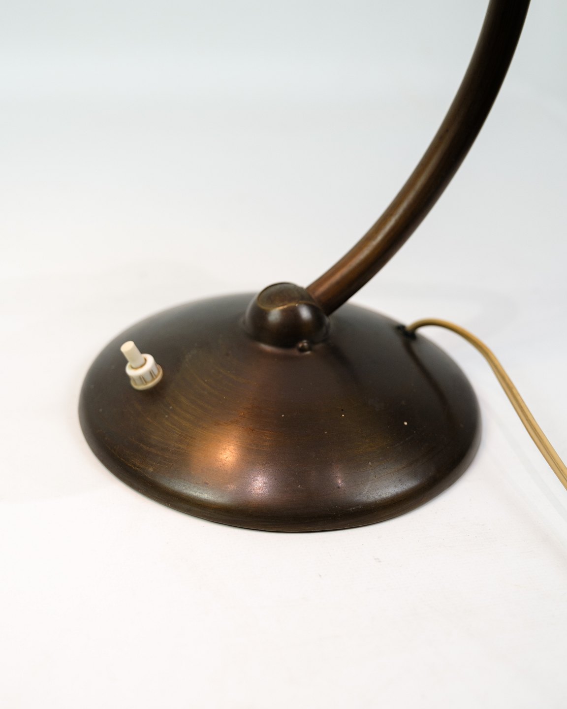 Bordlampe af bruneret messing formentligt fra omkring 1940-1950'erne. Lampen vil blive efterset på værkstedet inden salg. Vi har mulighed for at skifte ledningen til en brun stofledning hvis ønsket.