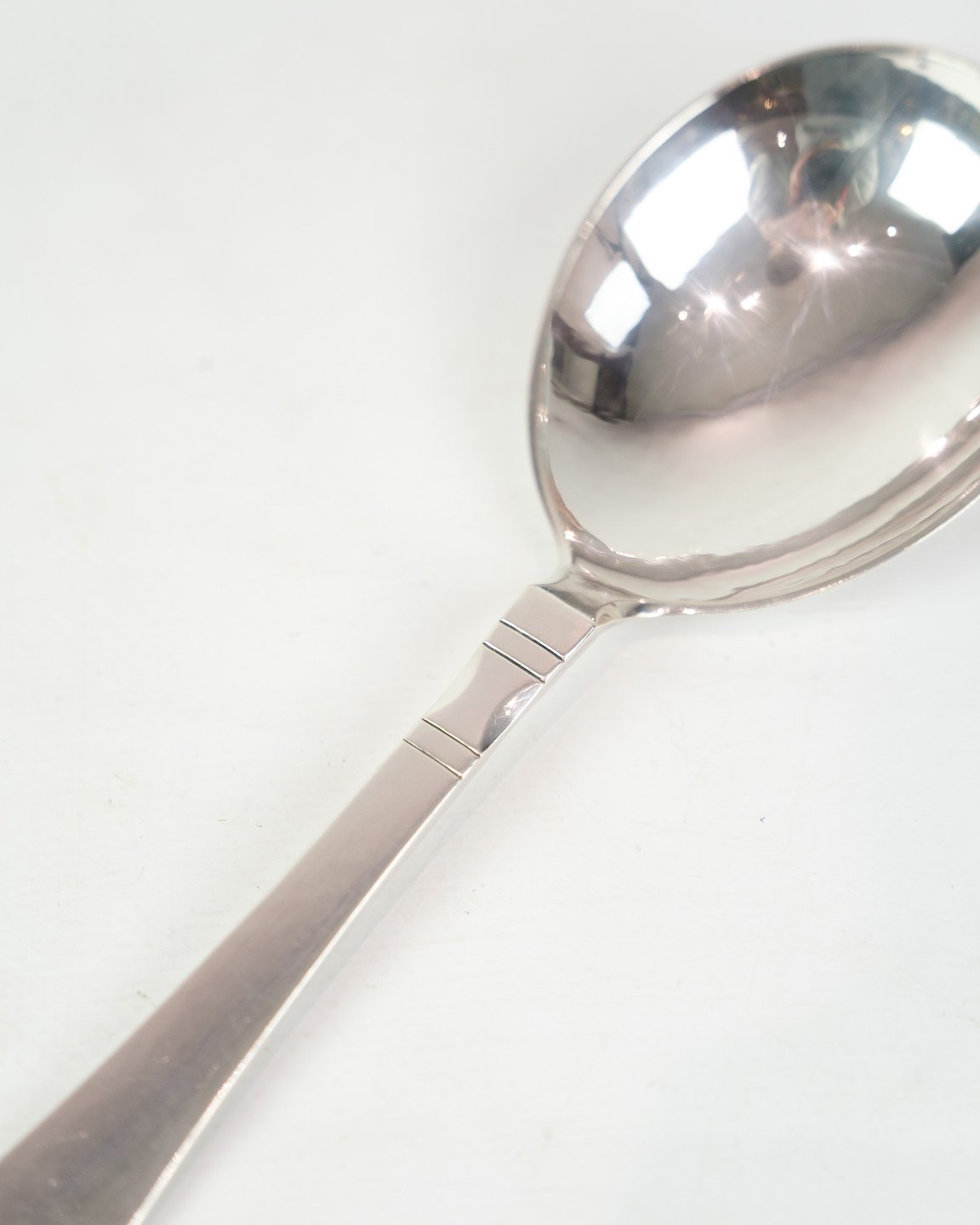 Denne kartoffel-/serveringsske er en del af Continental-serien fra Georg Jensen, udført i sterling sølv. Med sit tidløse design og funktionelle form er skeen ideel til servering af kartofler, grøntsager eller andre retter ved både hverdag og festlige lejligheder.