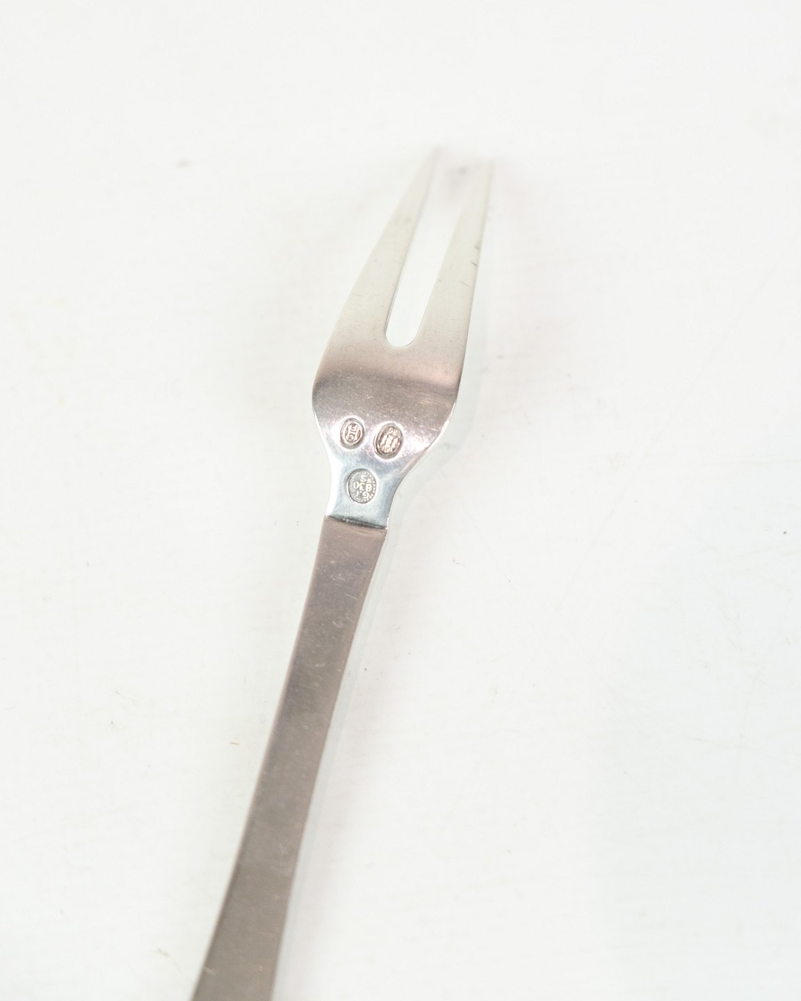 Denne pålægsgaffel fra Continental-serien er udført i sterling sølv af Georg Jensen. Med sit stilrene og funktionelle design er den ideel til servering af pålæg, små anretninger og delikate retter, hvor elegance og håndværk går hånd i hånd.