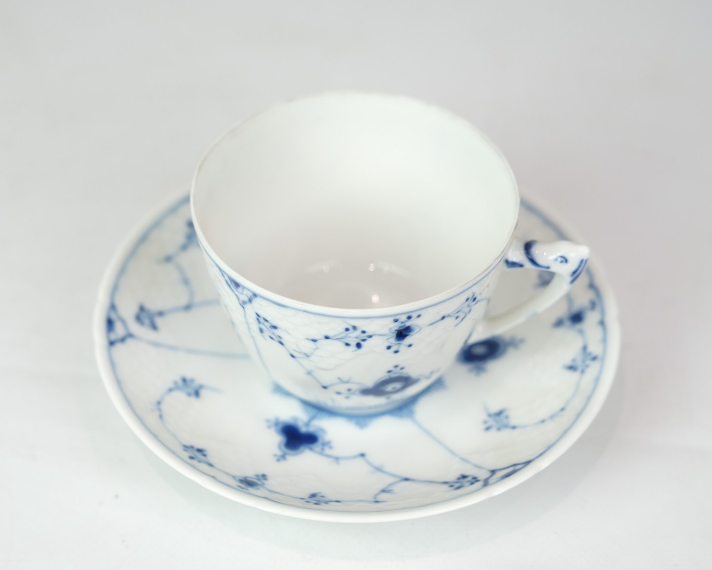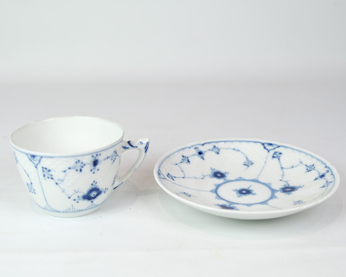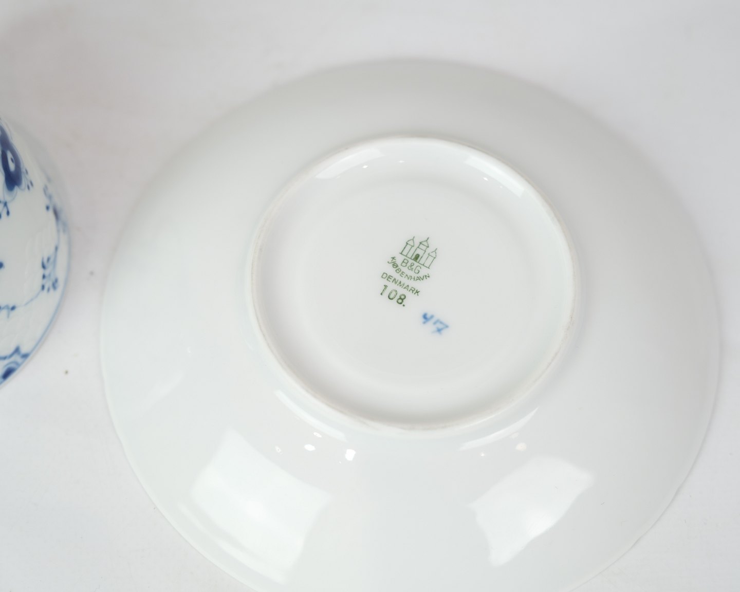 Cup with saucer in blue painted / blue fluting pattern made by B&G with saucer no. 108 and cup no. 202.