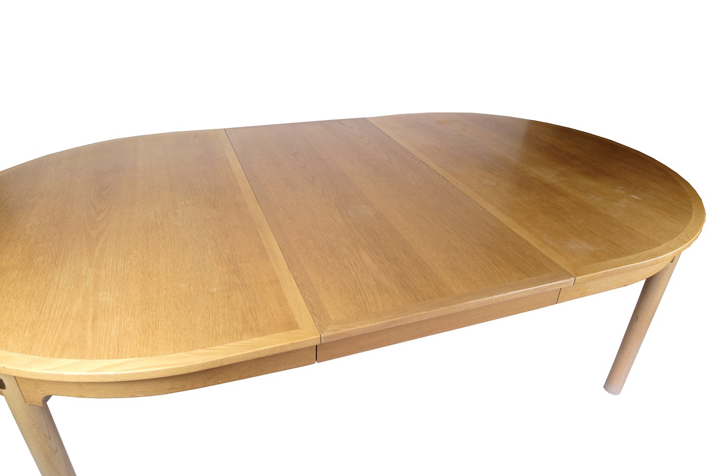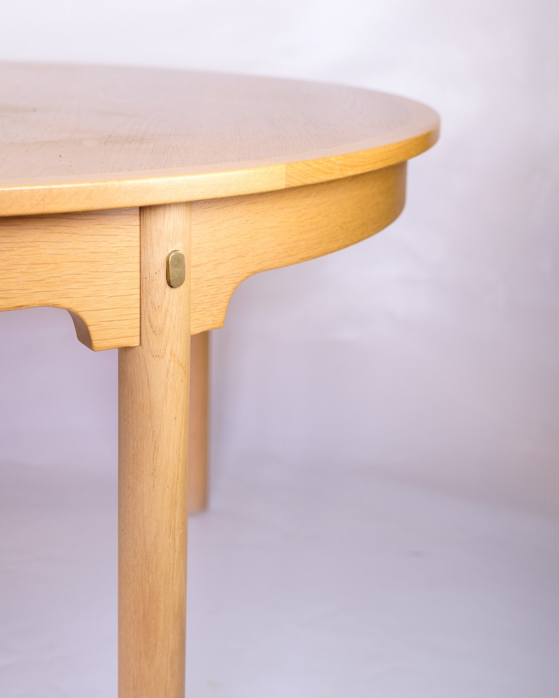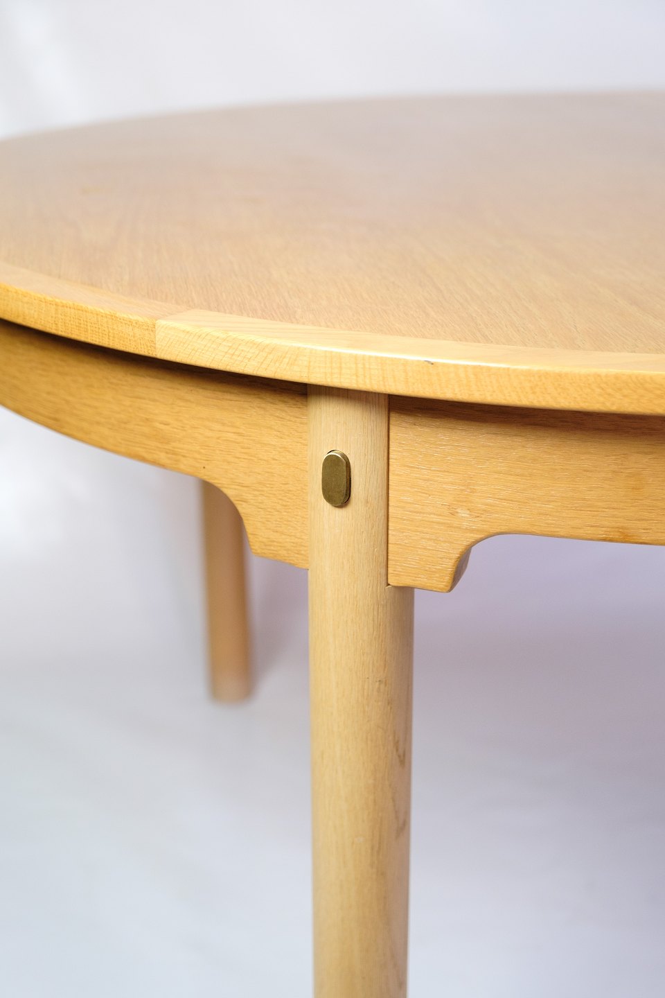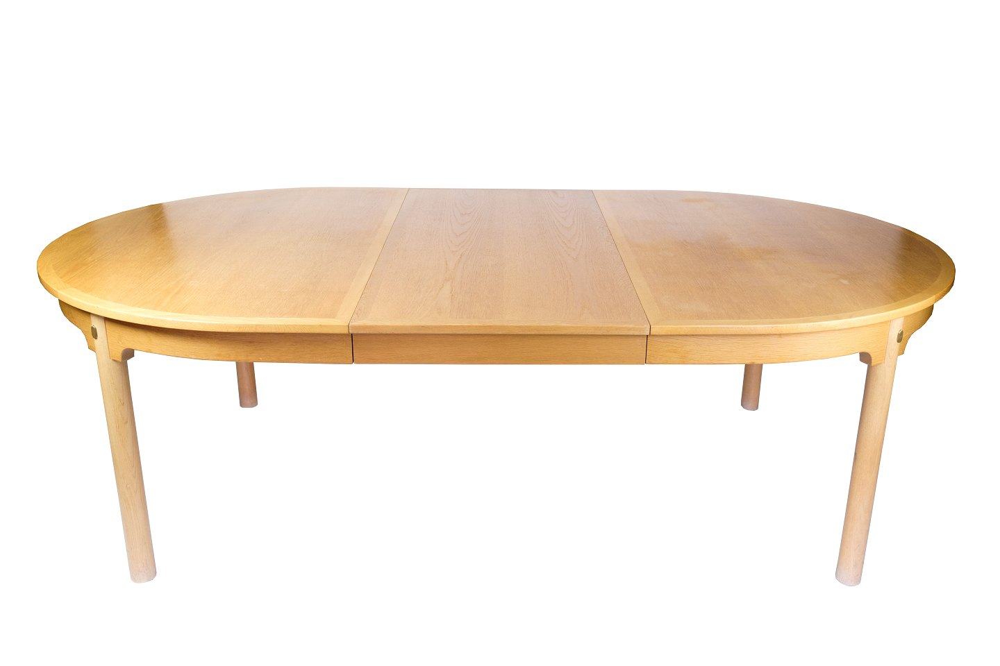 SoldOval dining table with extension from the "Øresundsserien", model 140, designed by Børge Mogensen and produced by Karl Andersson & Söner in the 1950s. The table is made of oak with solid oak legs mounted with brass fittings. It comes with four extension leaves and support legs for extra stability when fully extended.