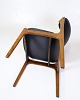 Set of four dining chairs, model OD49, designed by Erik Buch and manufactured by O.D. Møbler in the 1950s. The chairs are made of rosewood with seats upholstered in black leather. Model OD49 is known for its floating seat and soft organic lines, which provide high comfort and a light, elegant expression.