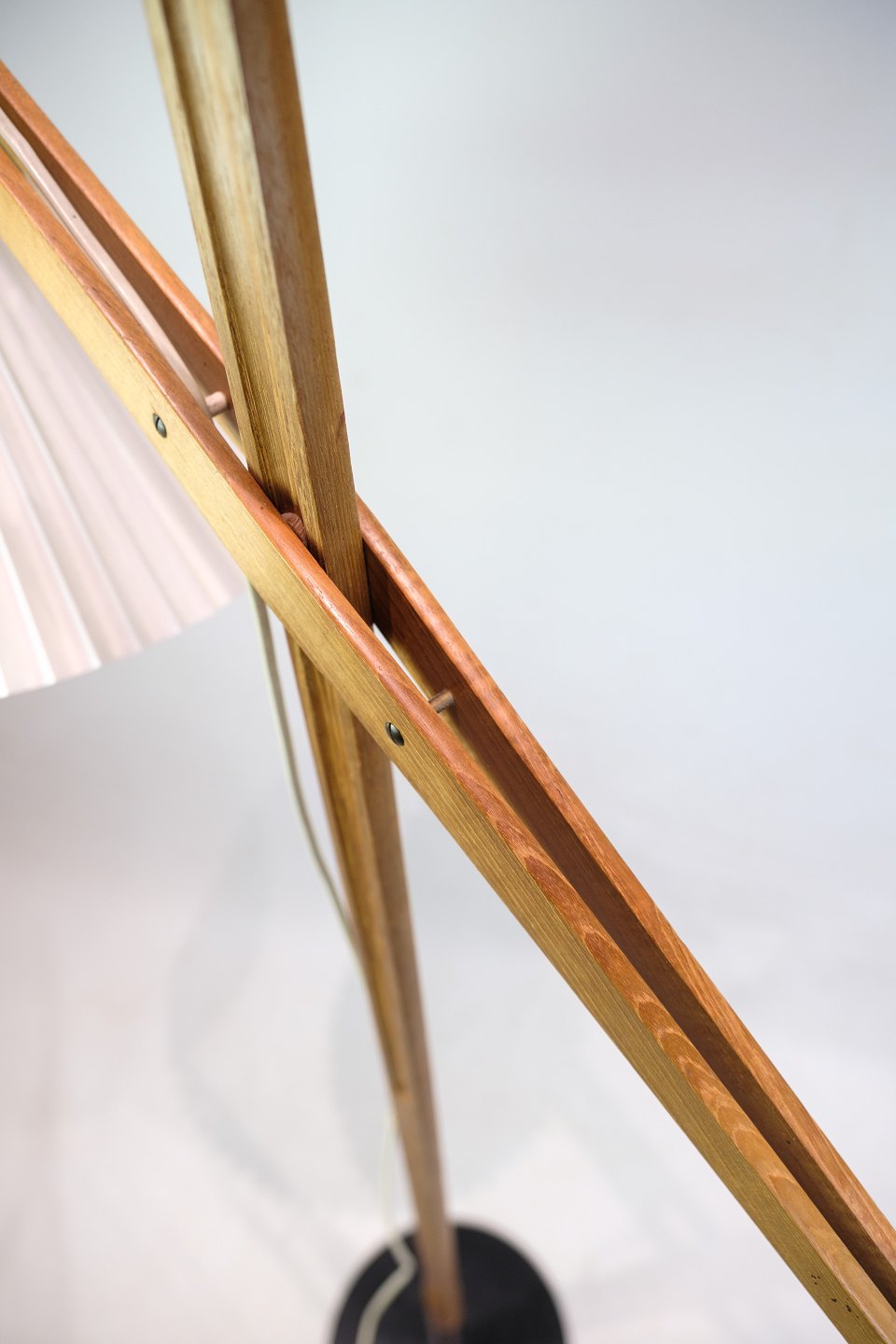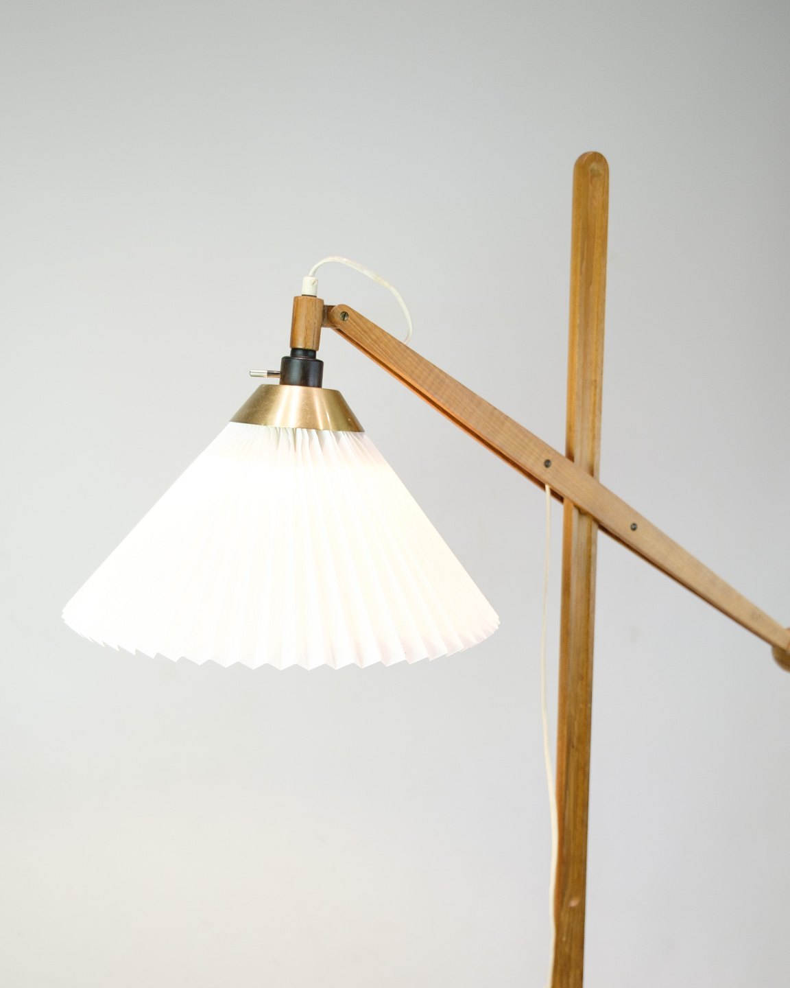 Floor lamp, model 325 by Le Klint, designed by Vilhelm Wohlert in teak with original shade from around the 1950s, Denmark. It is a rather sought-after floor lamp, due to its age and good condition.