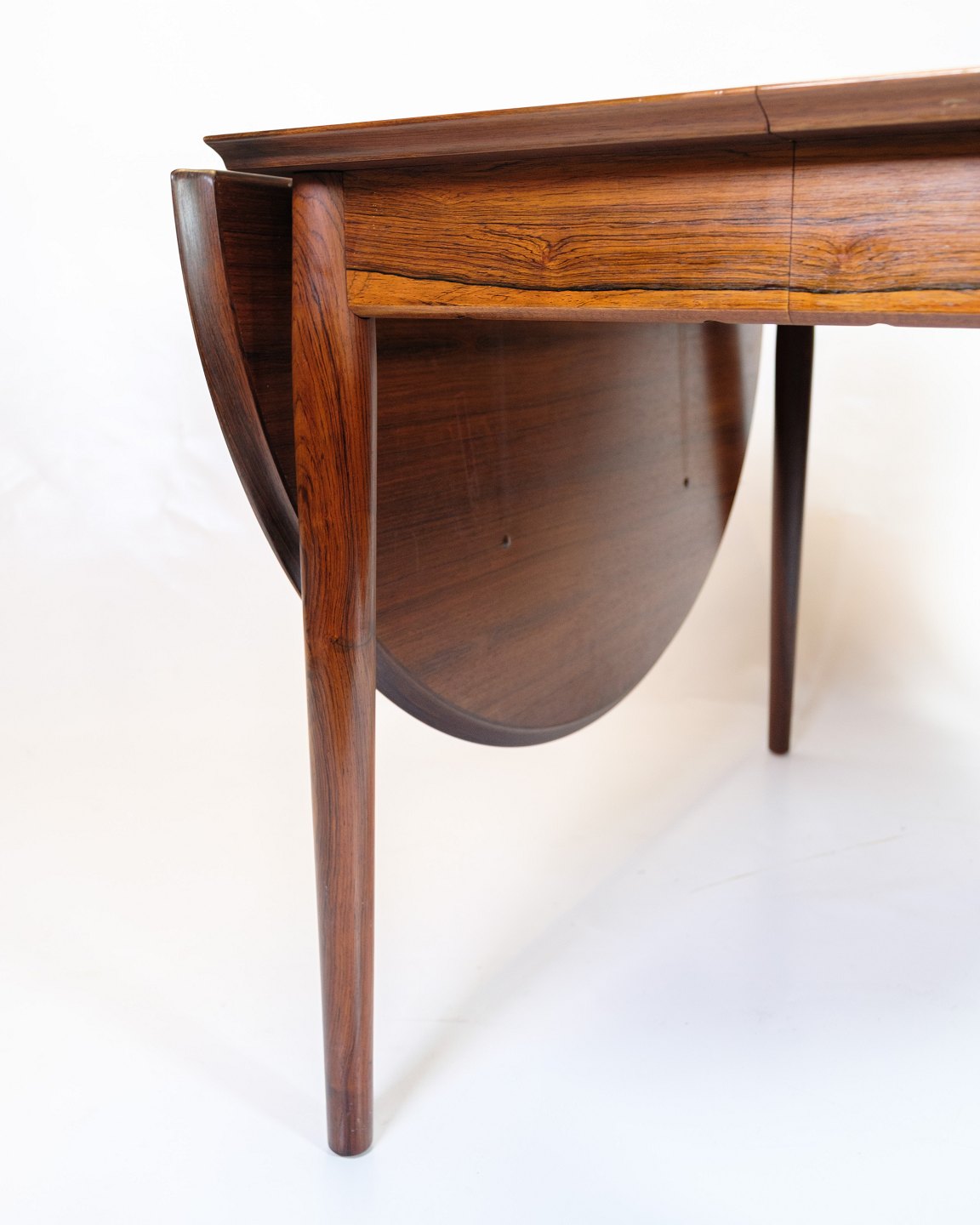 Dining table with flaps and pull-out in rosewood, designed by Arne Vodder, circa 1960s. Danish design with 2 extension leaves.