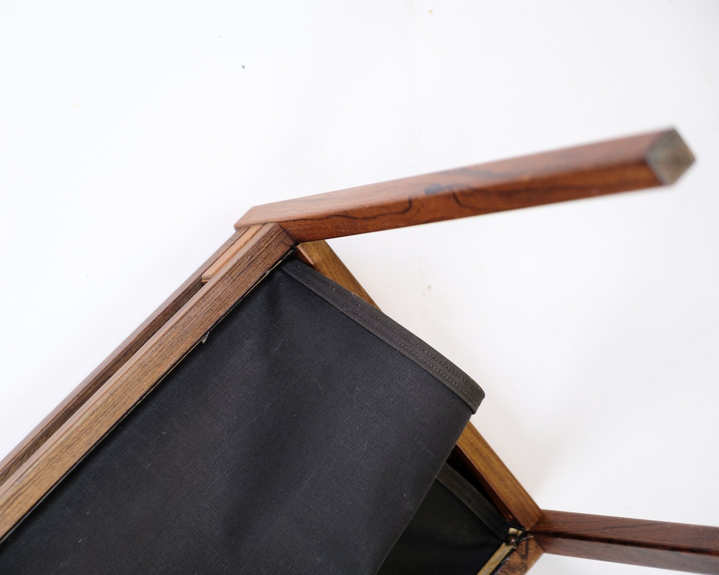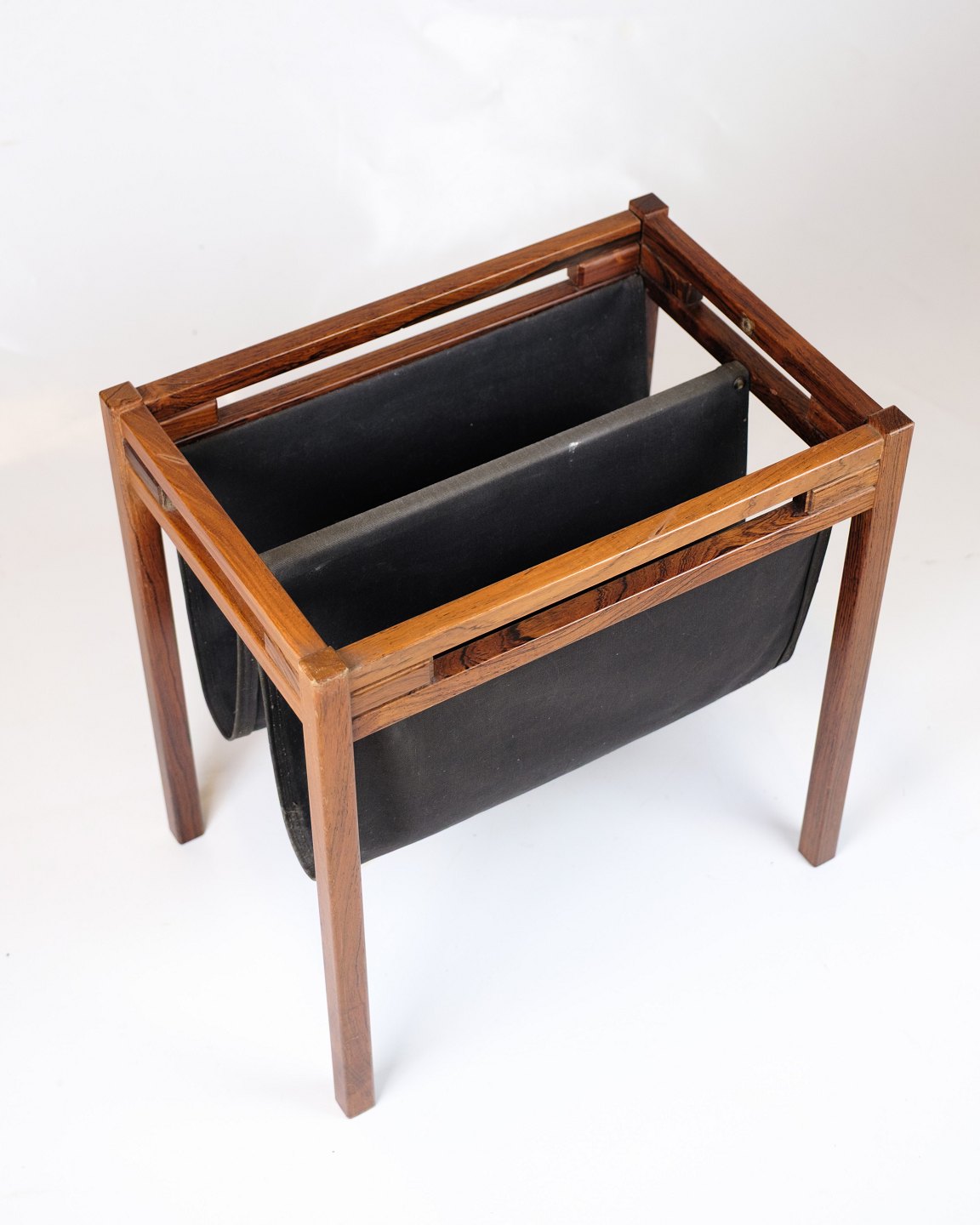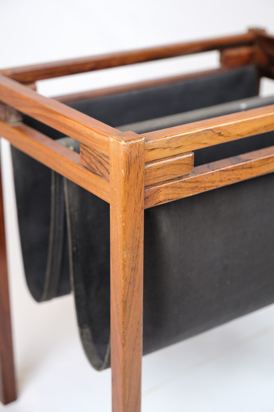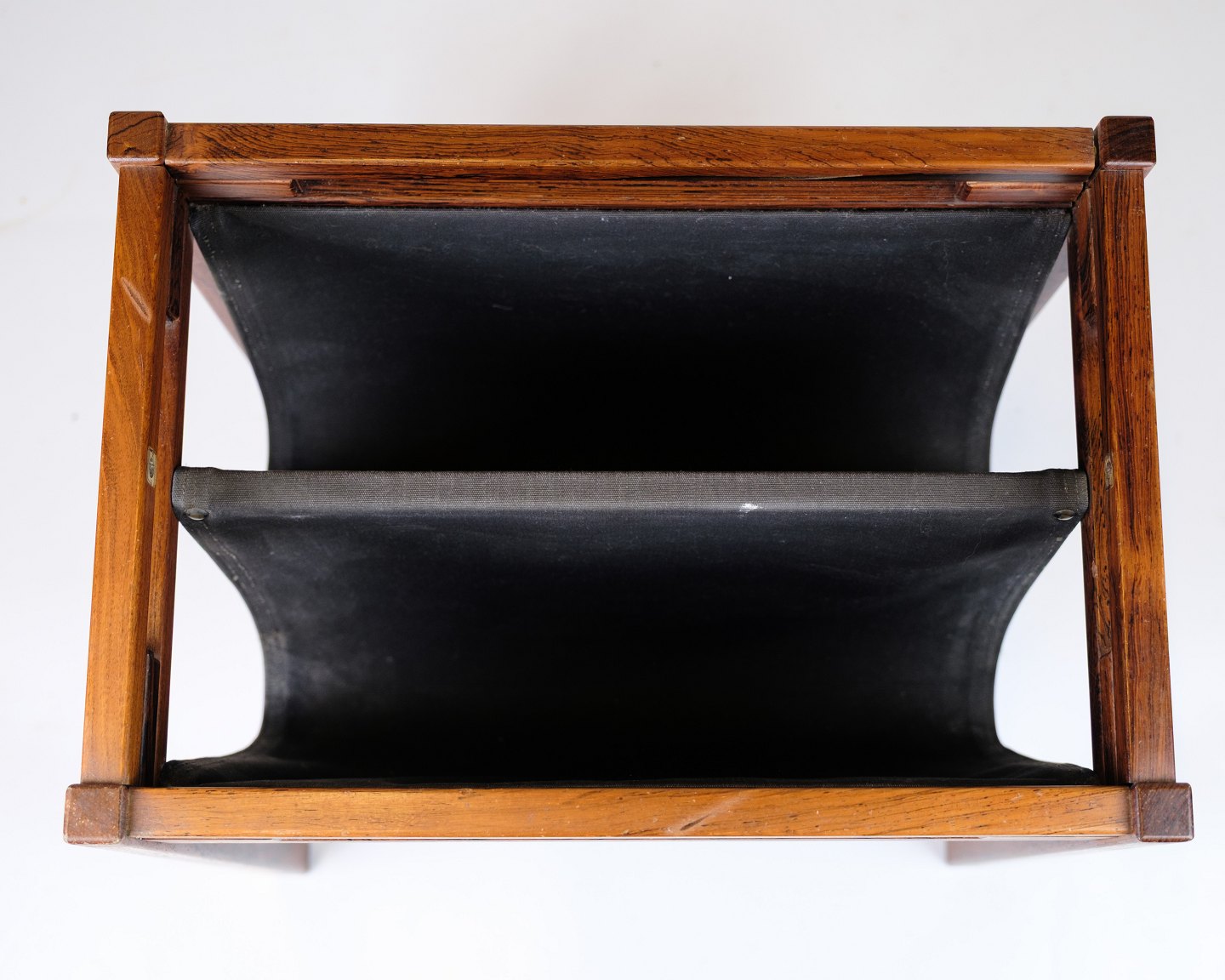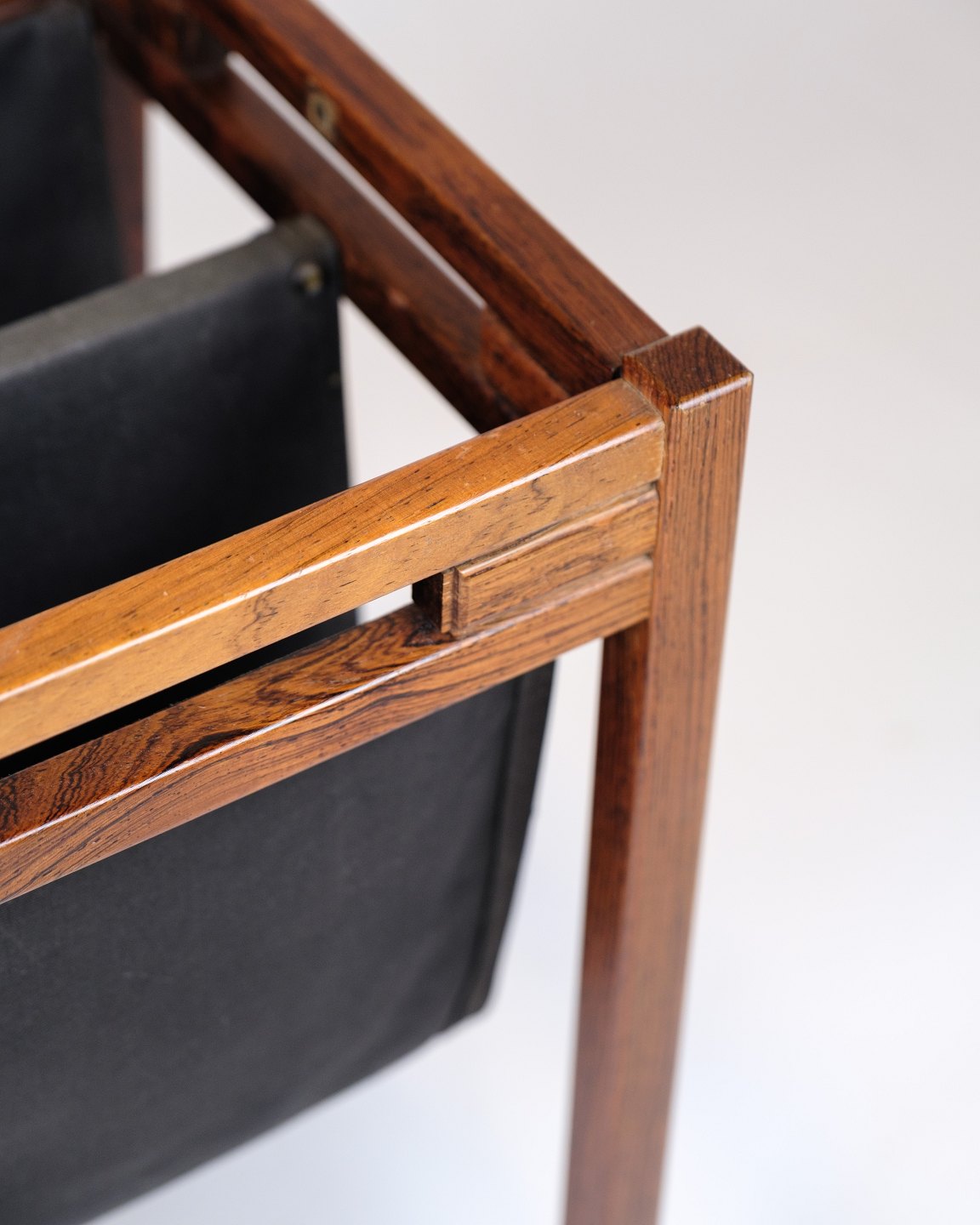 Avis- og magasinholder fra 1960’erne, udført i palisander og sort canvas.