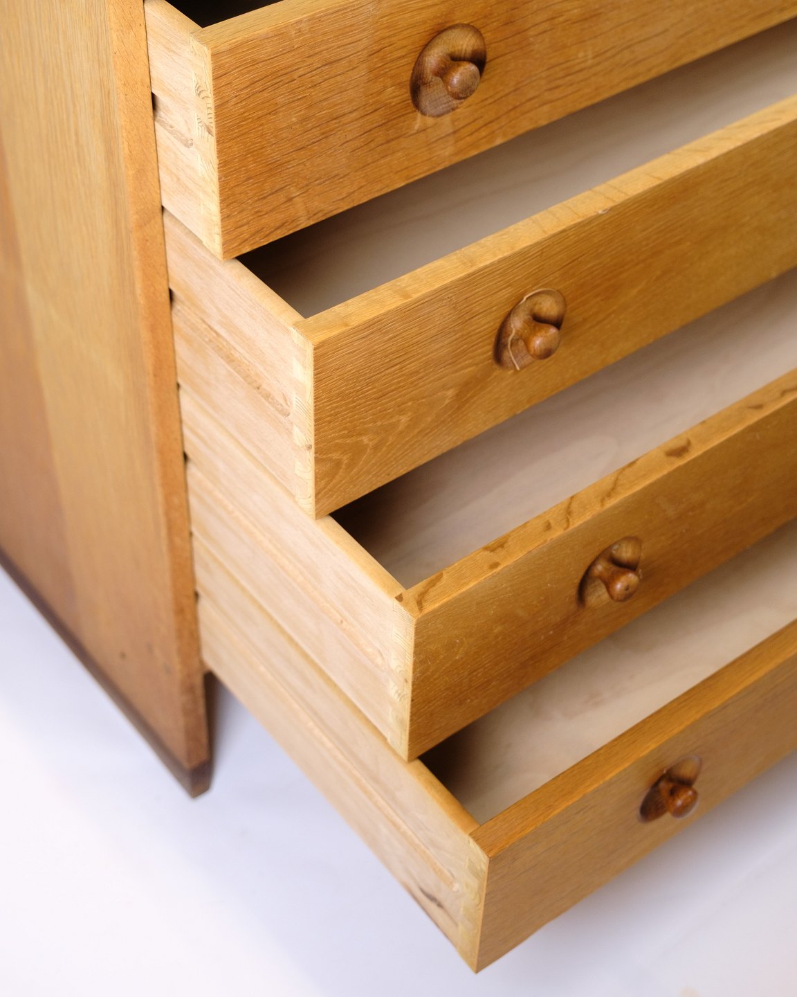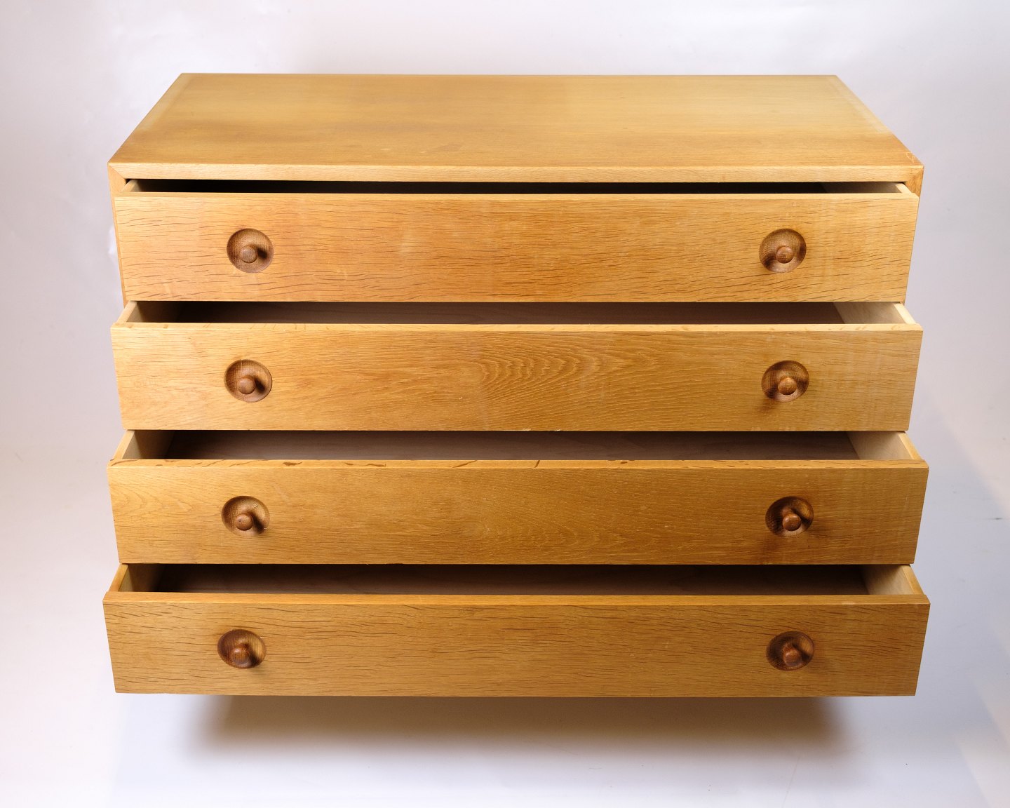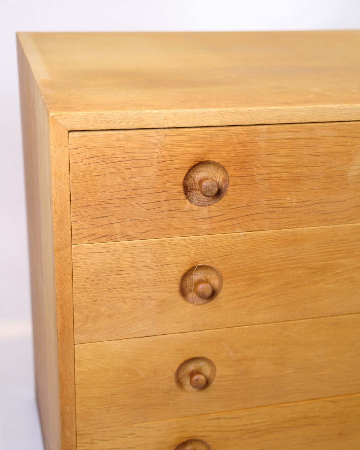 SoldLow chest of drawers in oak, designed by Hans J. Wegner for Ry Møbler in the 1950s.