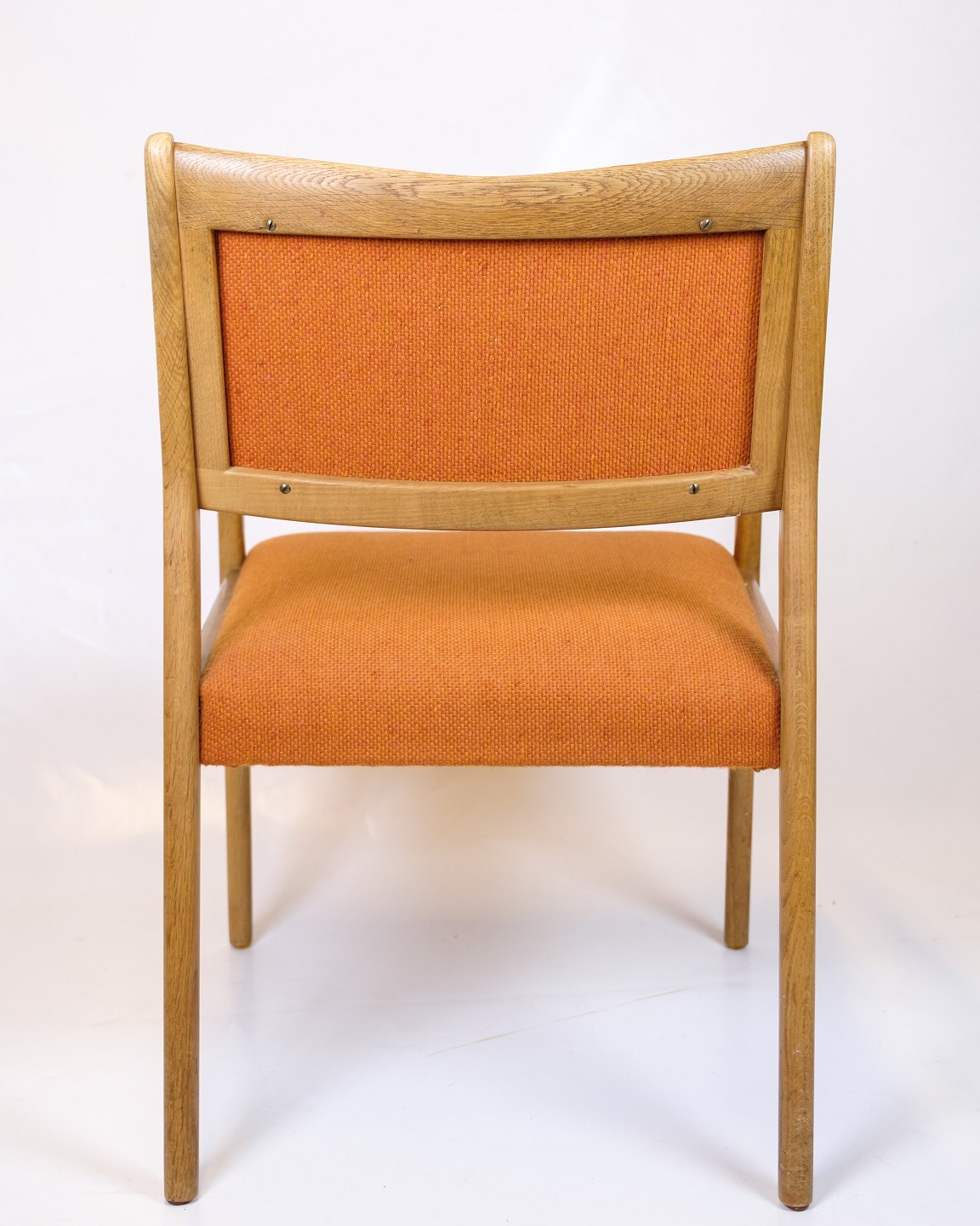 Armchair designed by Karl Erik Ekselius and produced by JOC Vetlanda in Sweden in the 1960s. The chair is made of solid oak with a light, shaped frame and fine details. The seat and back are upholstered in orange fabric.