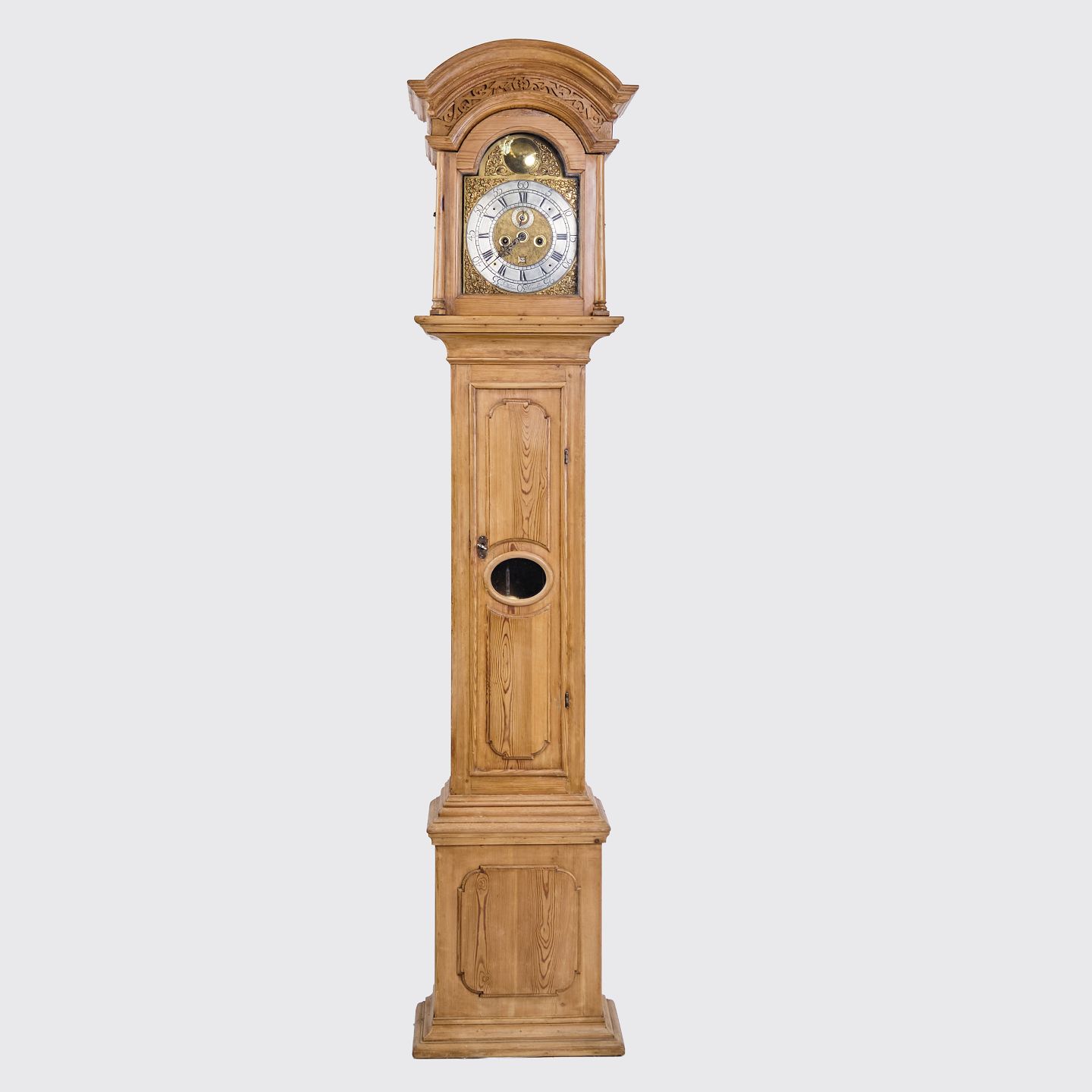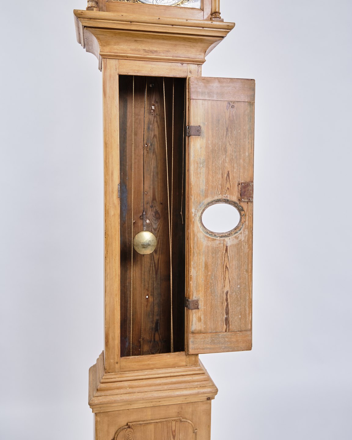 Antique Southern Jutland grandfather clock from the 1780s. Light oak. H: 235 cm, W: 51 cm, D: 25 cm. Classic Danish grandfather clock.