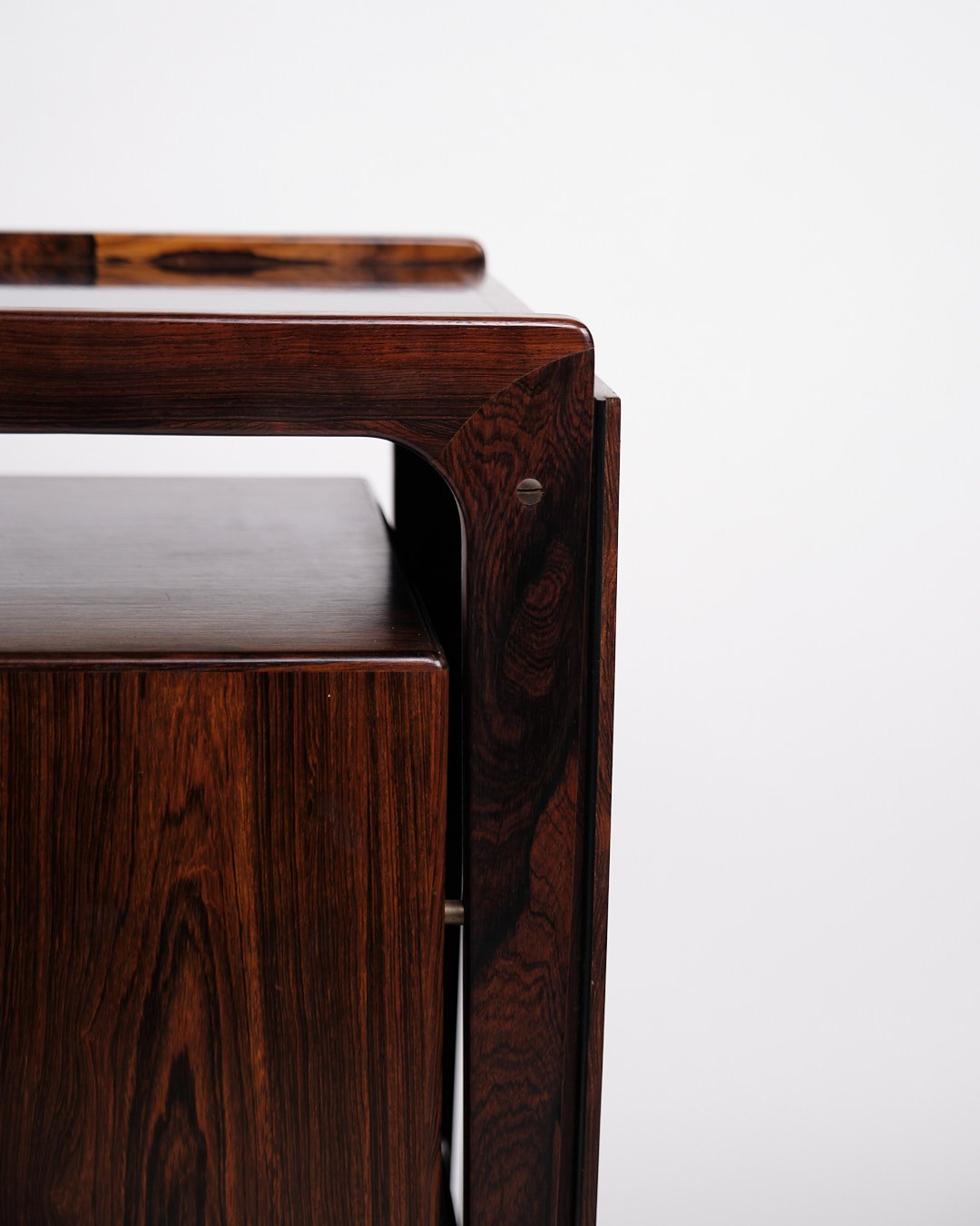 Bar Cabinet On Wheels - Foldable Top - Rosewood and Black Formica - Solid Rosewood Handles - Dyrlund