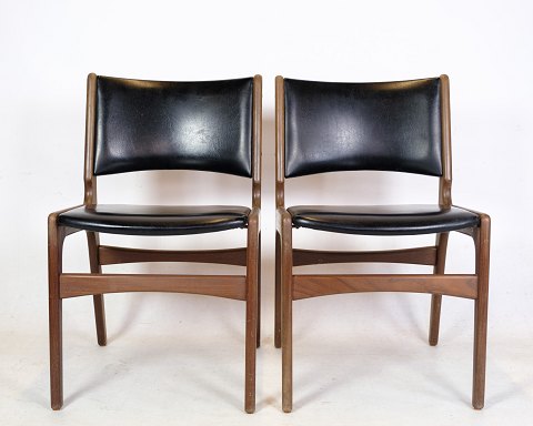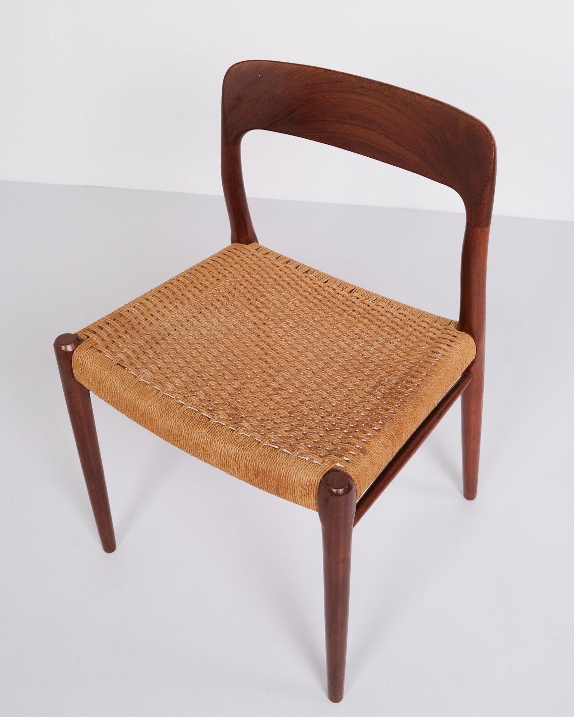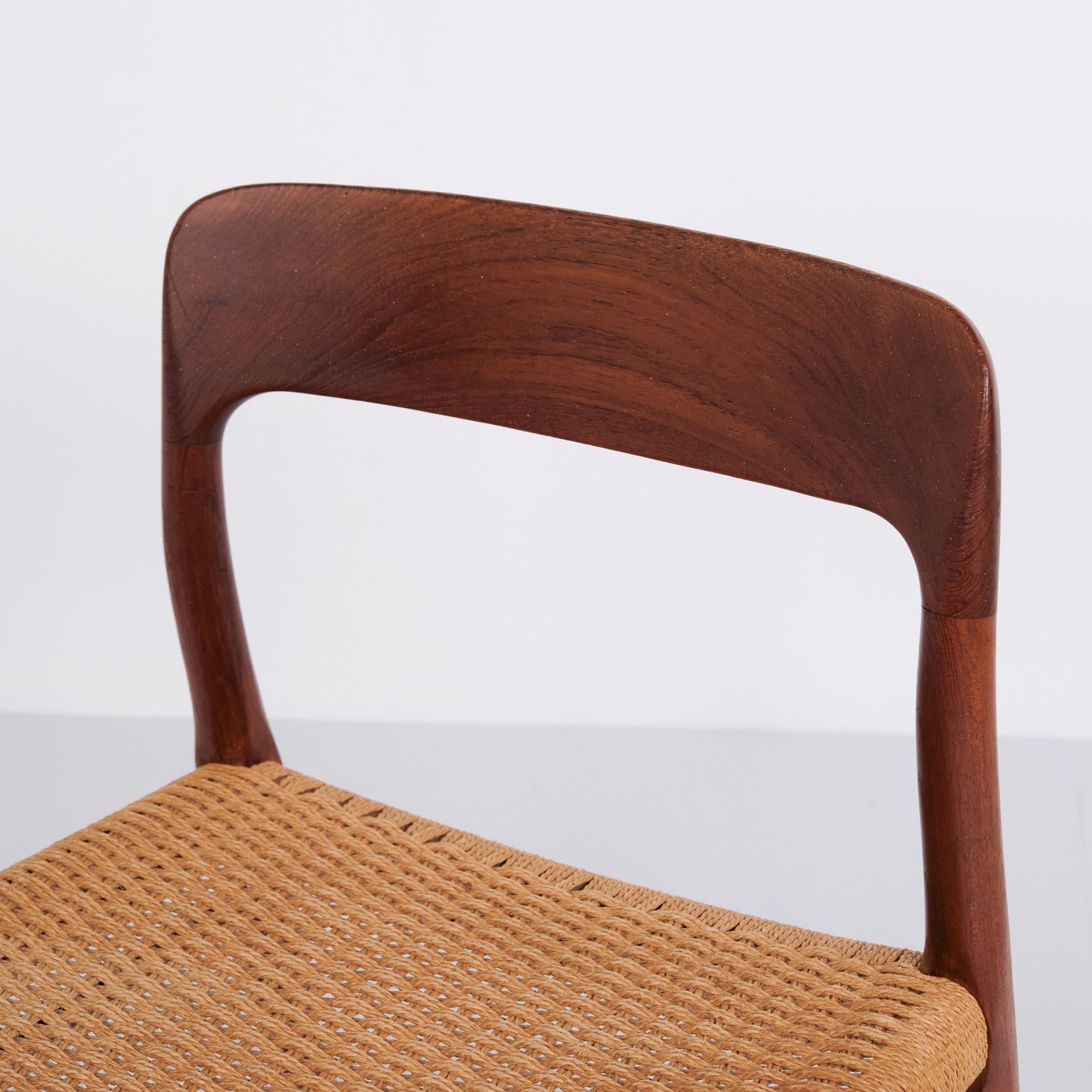 Set of Five Dining Chairs - Model 75 - Teak - Paper Wicker - N.O Møller - 1960s