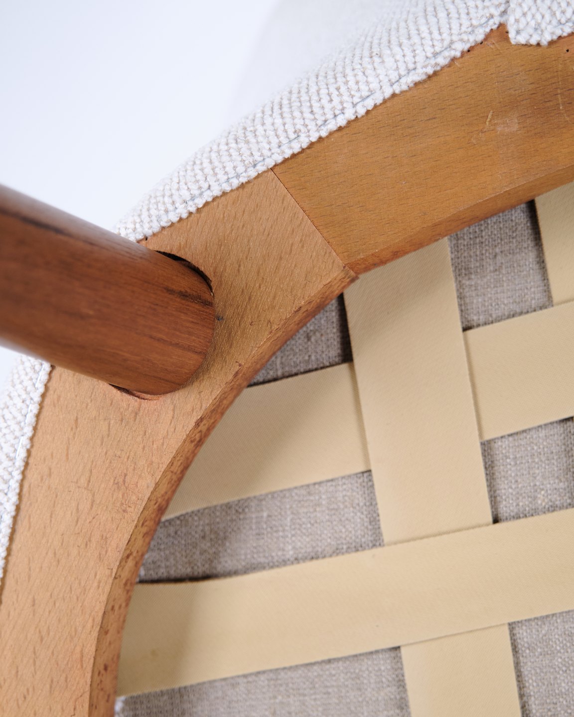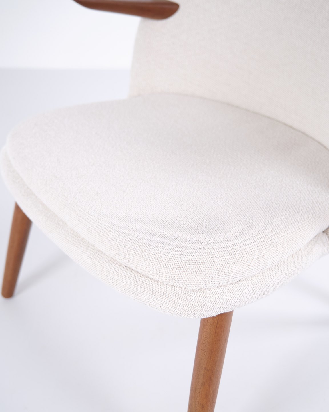 Kurt Olsen armchair from Glostrup Møbelfabrik. Teak with light fabric, 1960s.