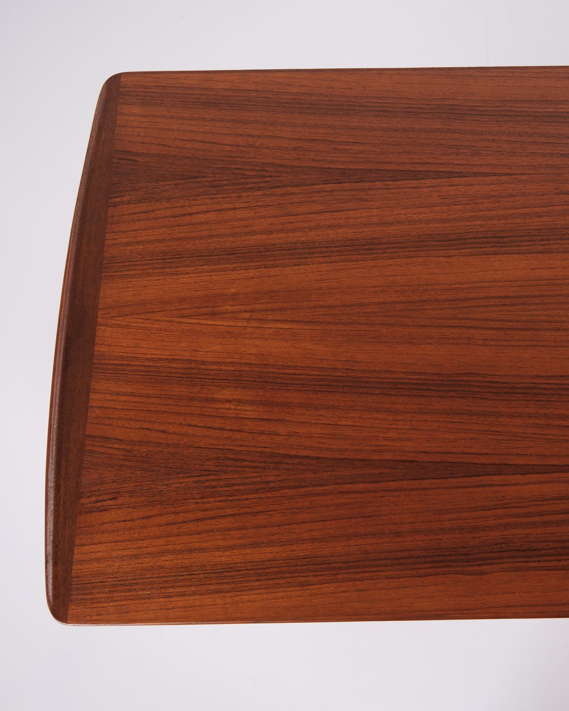 Coffee table made of teak with a shelf made of wicker from the 1960s. Classic Danish design.