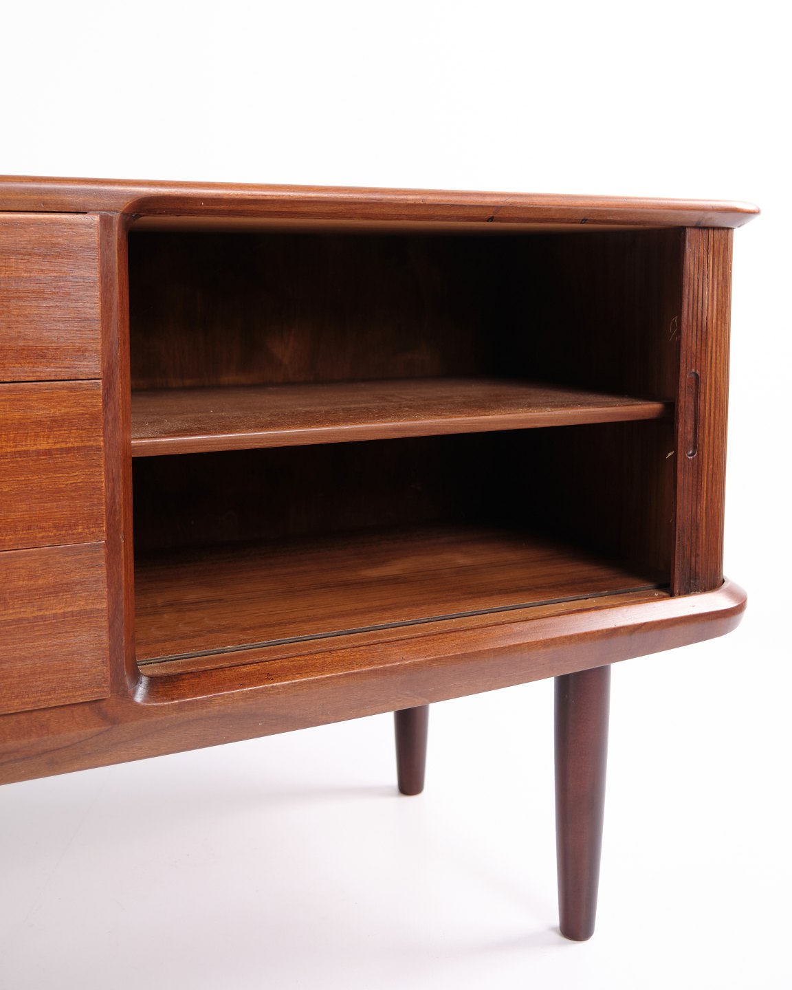 Sideboard from the 1960s, made of teak with three central drawers and louvered doors on the sides.