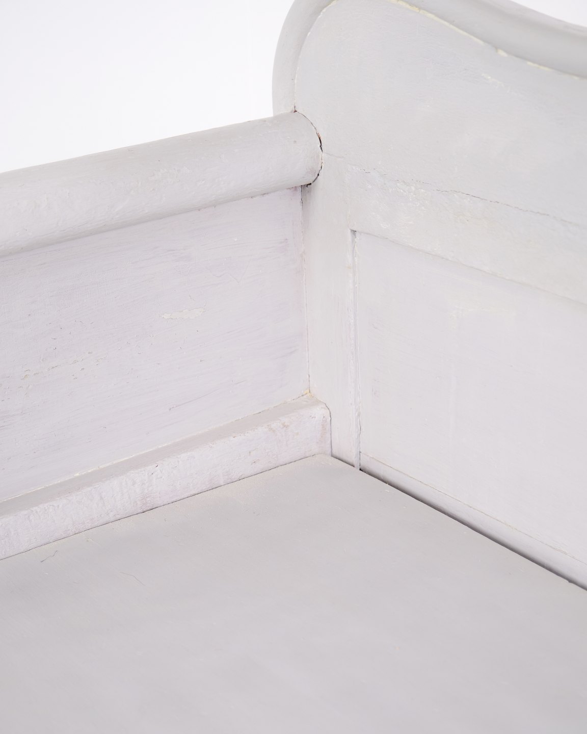 Antique Swedish bench from the 20th century, made in pine and painted grey. Classic Scandinavian design with storage space under the seat and characteristic period details. A solid piece suitable for hallway, kitchen or living room.