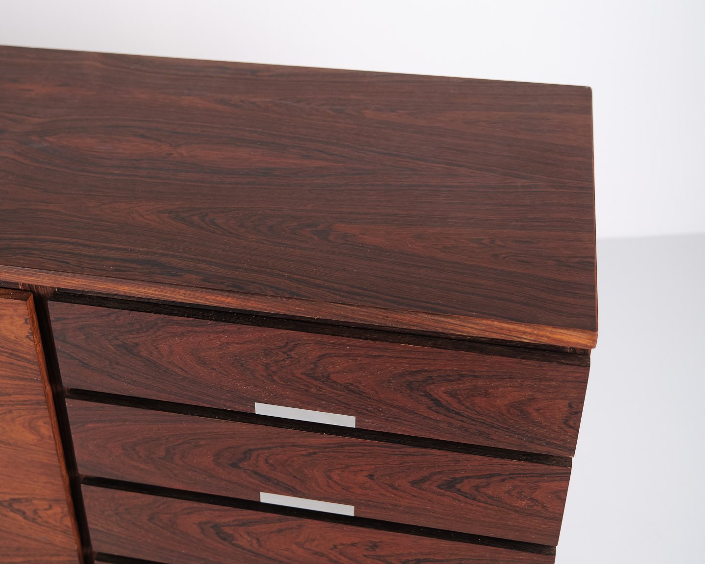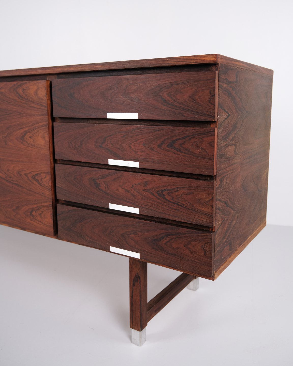 Please contact us for price informationSideboard in rosewood designed by Kai Kristiansen for Feldballes Møbelfabrik. Danish design from the 1960s with aluminum handles and feet.
