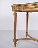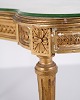 Antique desk from the 1850s in Gustavian/Louis XVI style, gilded wood, glass top and drawer.