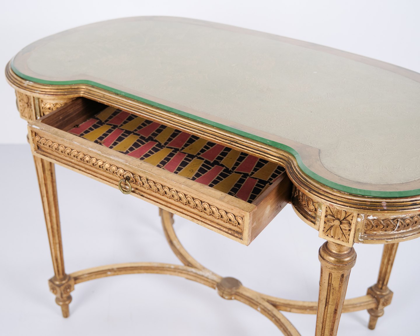 Antique Desk With Glass Top & Drawer – Gustavian/Louis XVI Style – Gilded Wood – 1850s
