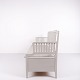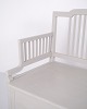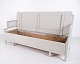 Antique storage bench from the 1860s in grey-painted pine wood with high back and storage. Antique storage bench from the 19th century.
