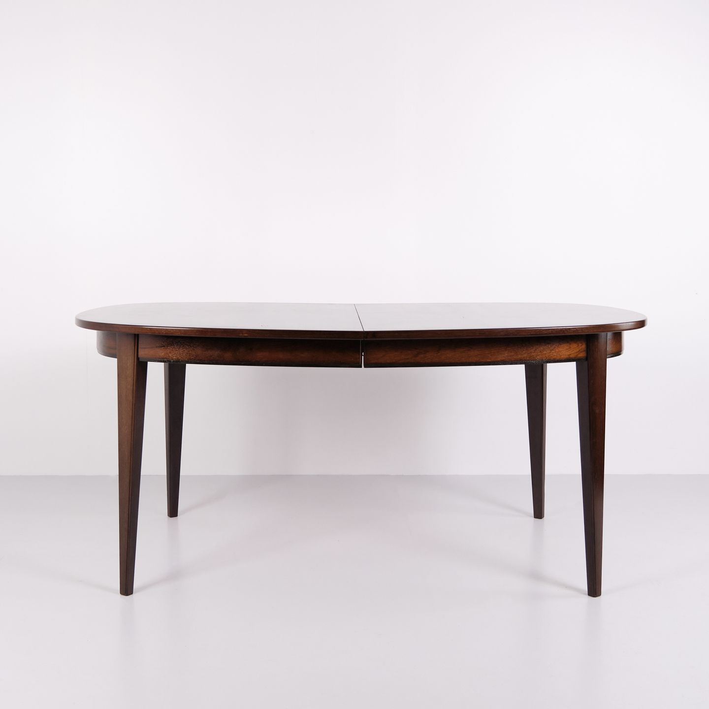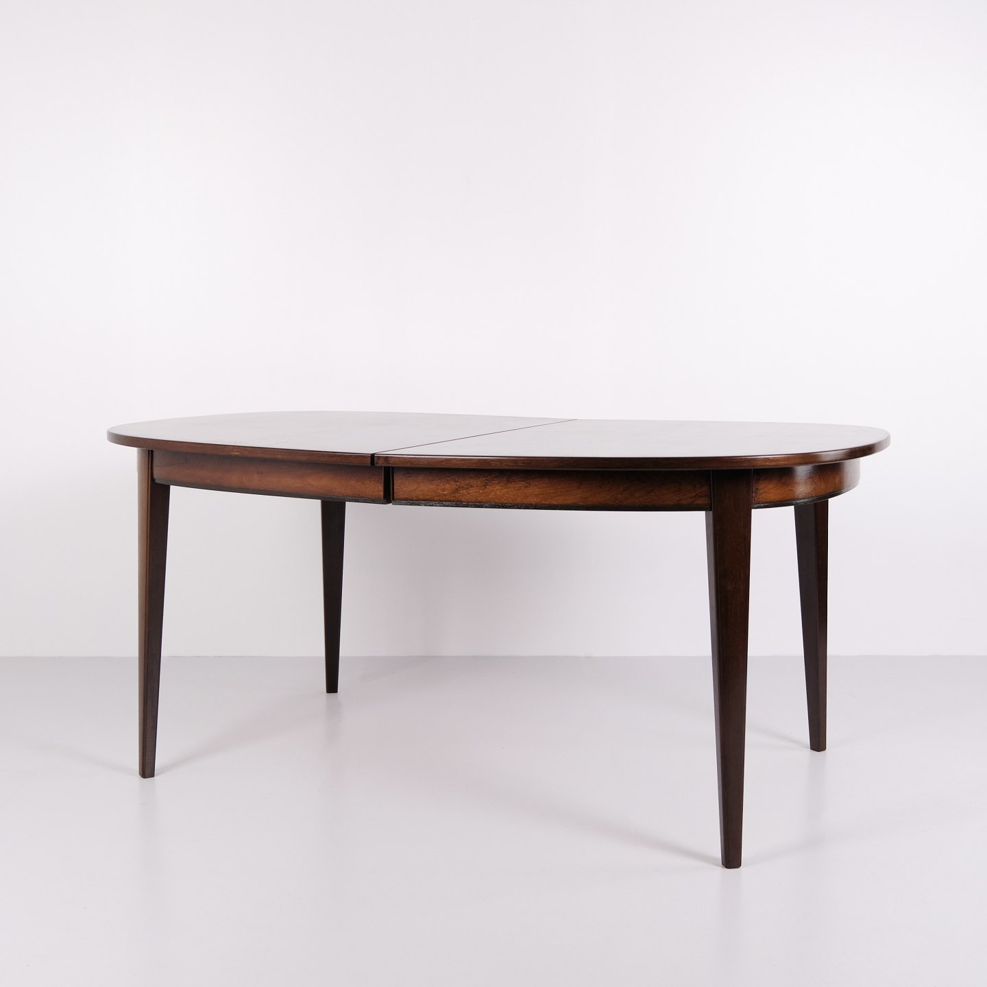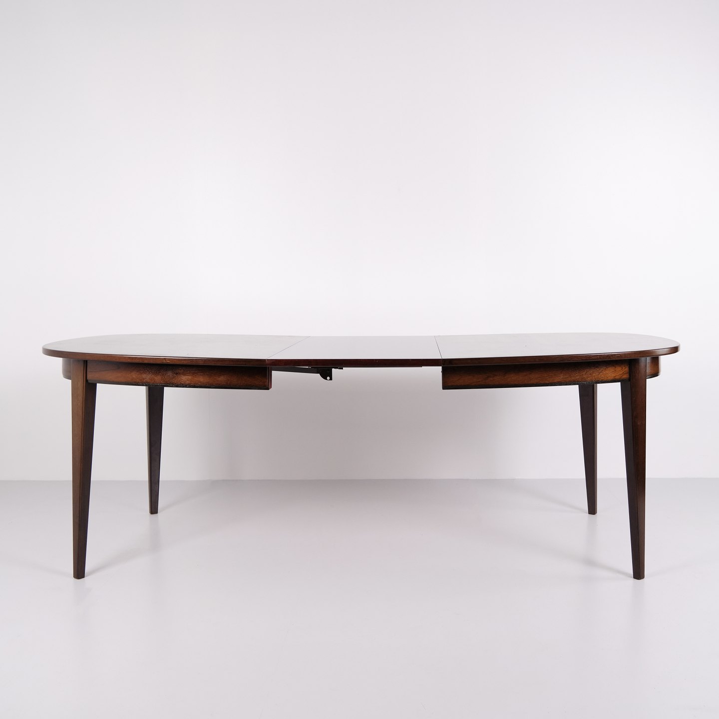 Omann Jun Model 55 dining table by Gunni Omann in rosewood with extension leaves from the 1960s. Danish design rosewood dining table.