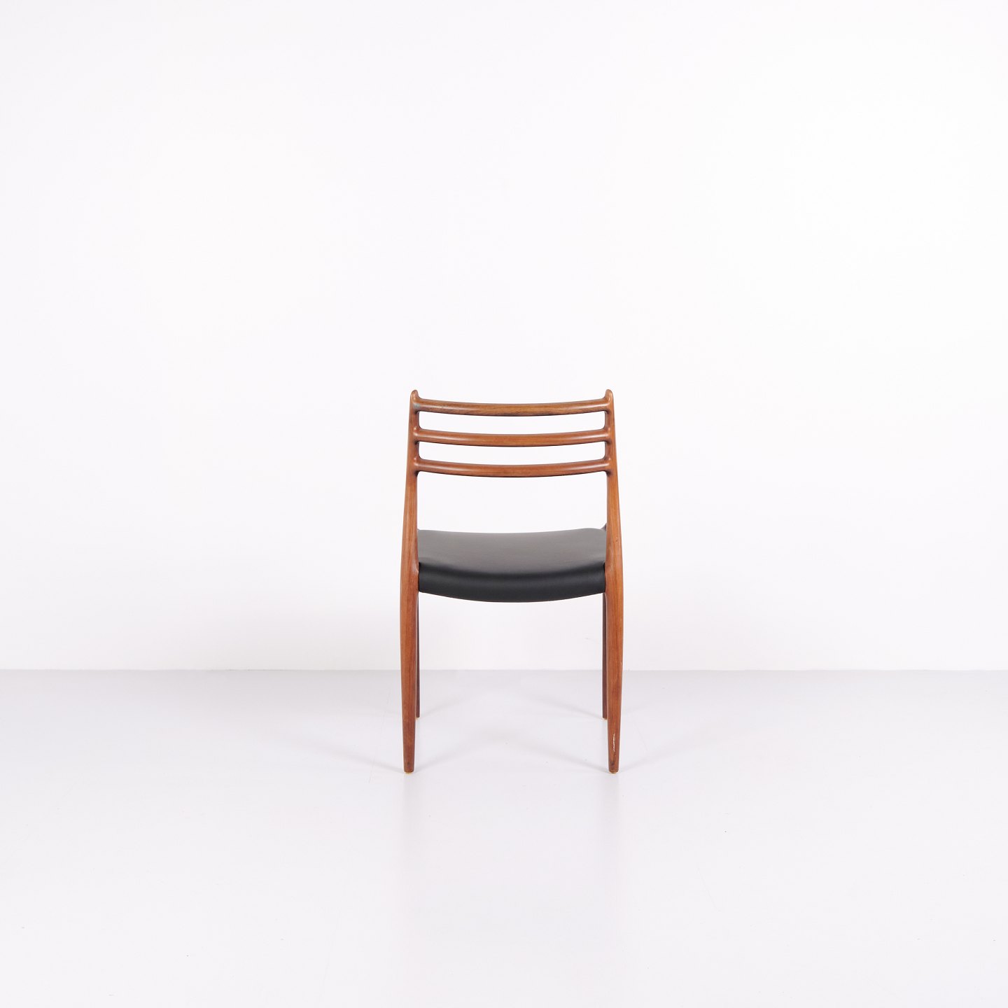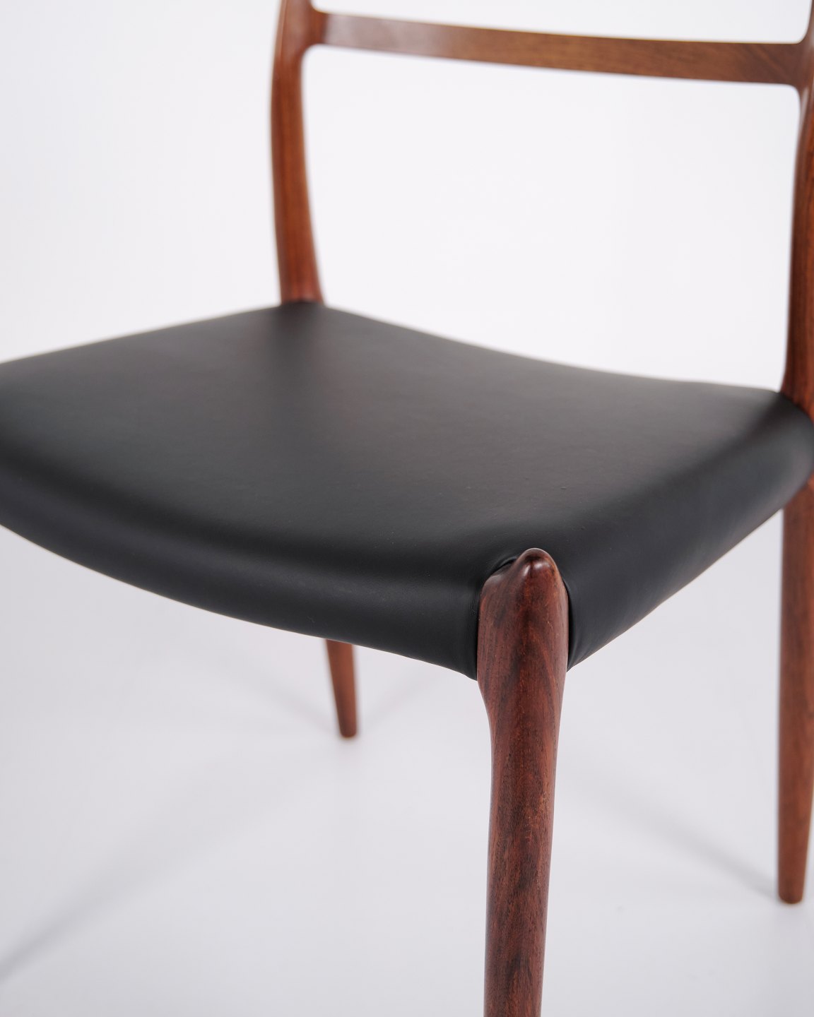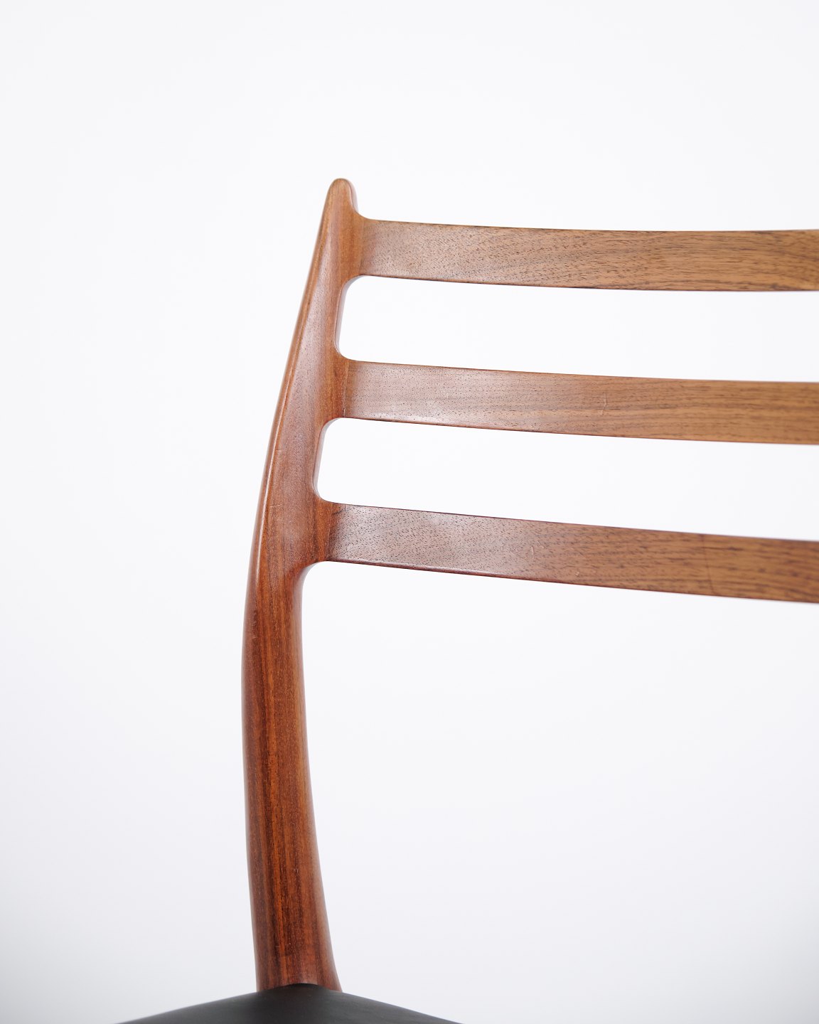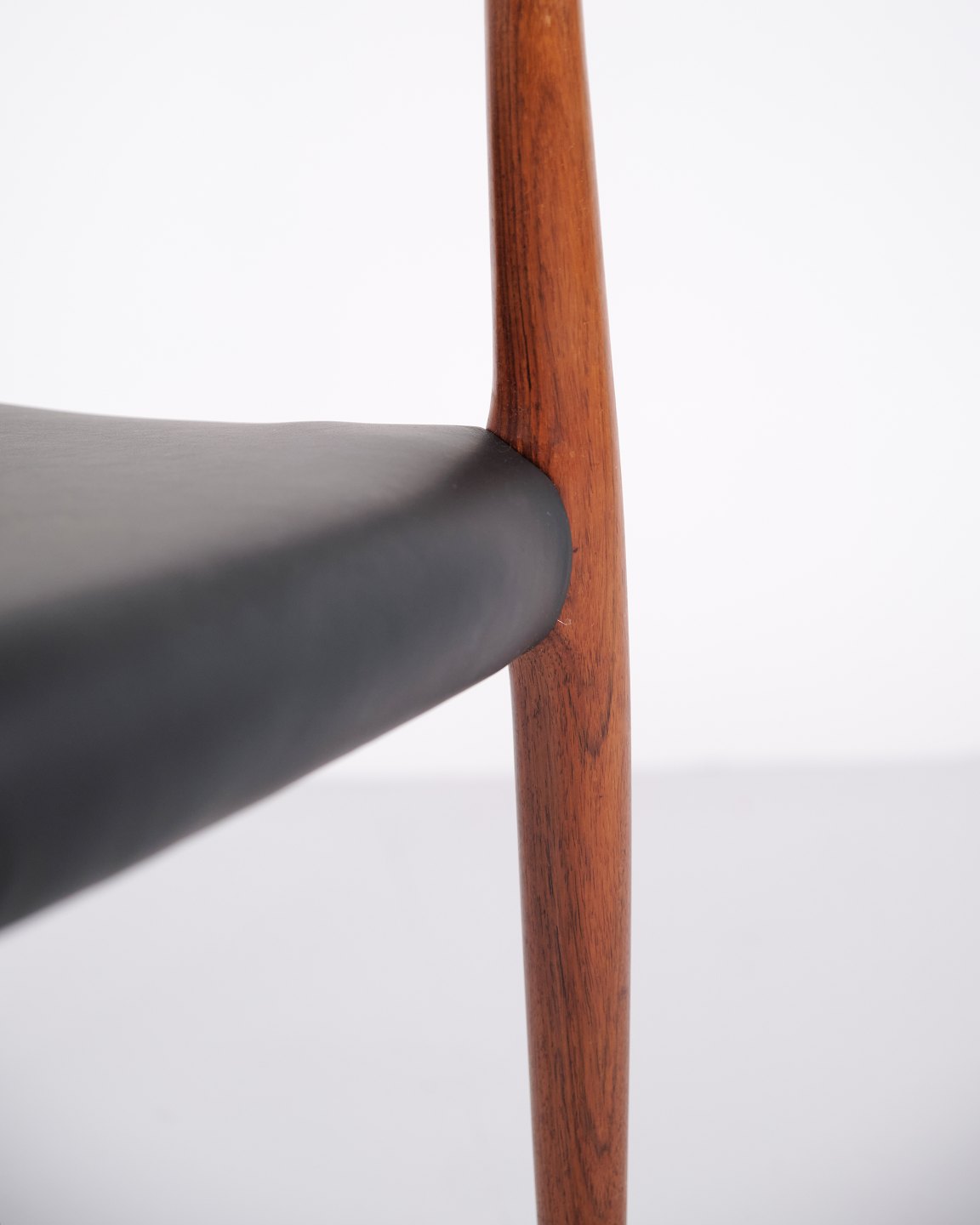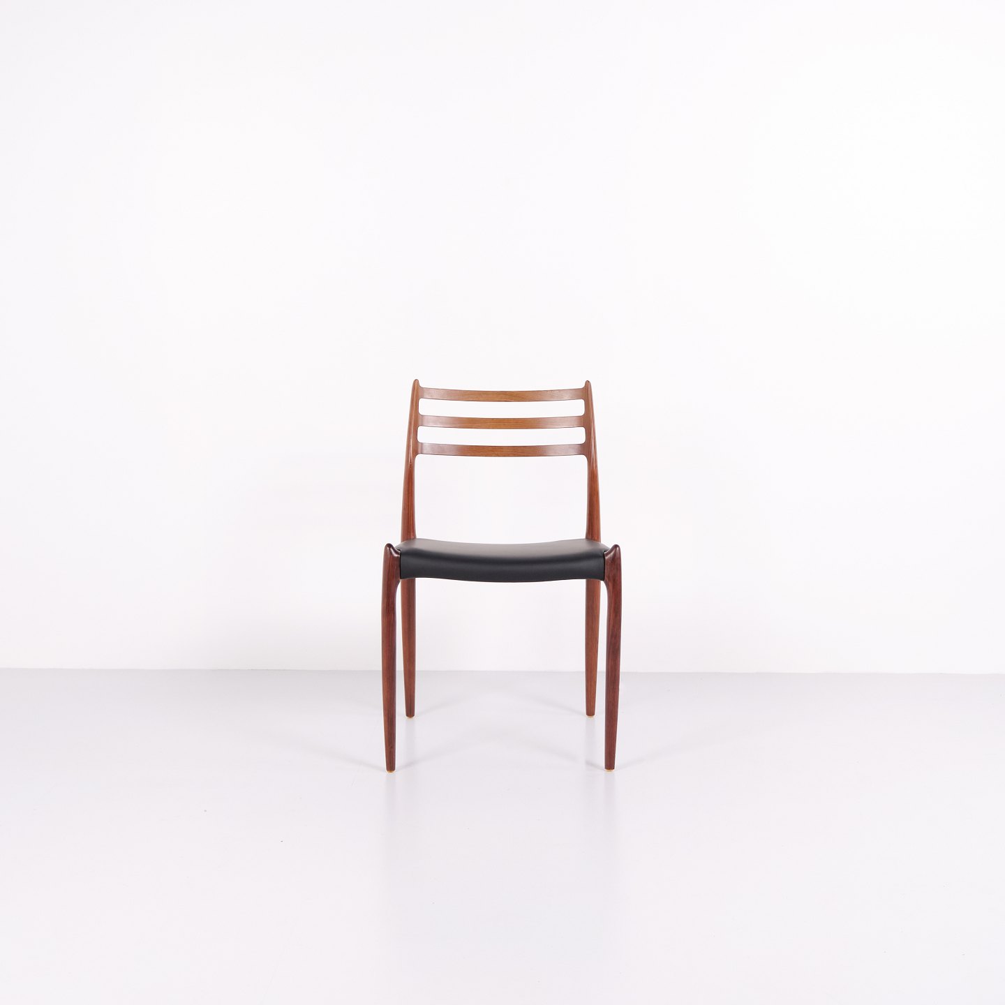 Ensemble de quatre chaises de salle à manger N.O. Møller, modèle 78, en palissandre des années 1950. Design danois classique avec un élégant travail d’ébénisterie.