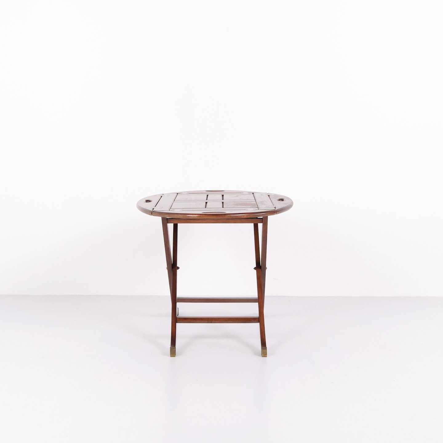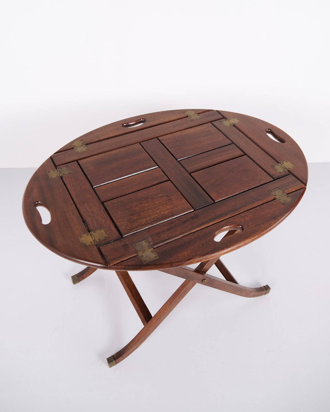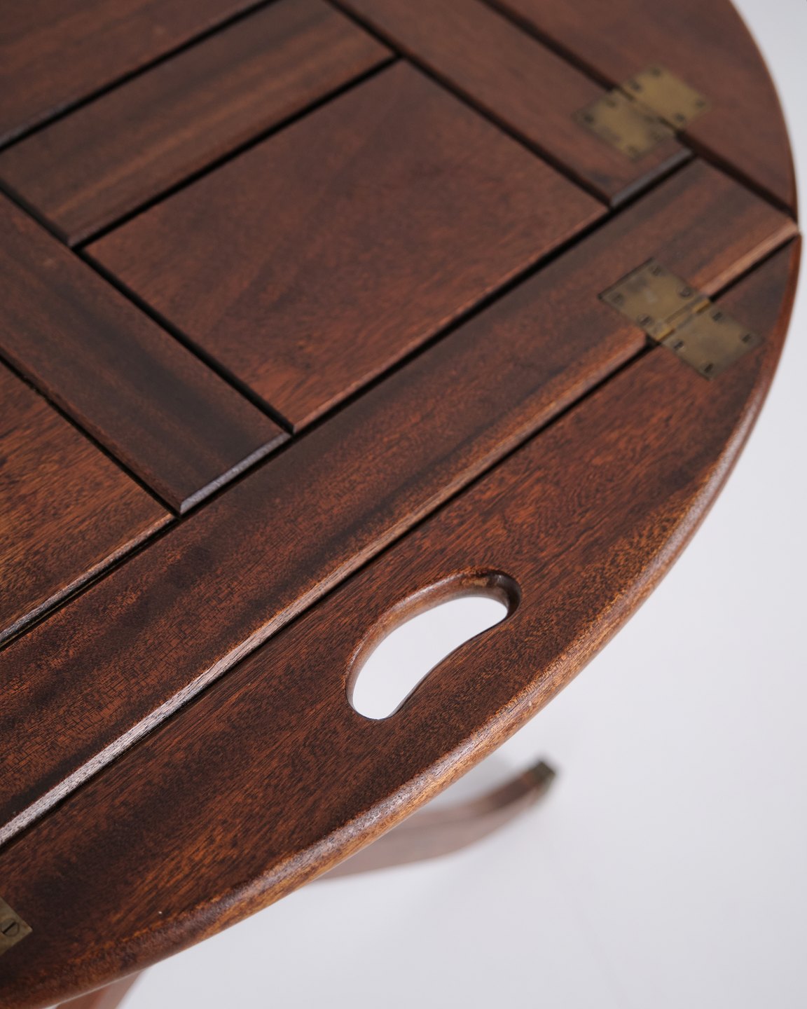Table butler des années 1940 en acajou avec garnitures en laiton. Table de service classique avec plateau amovible et design élégant.