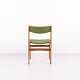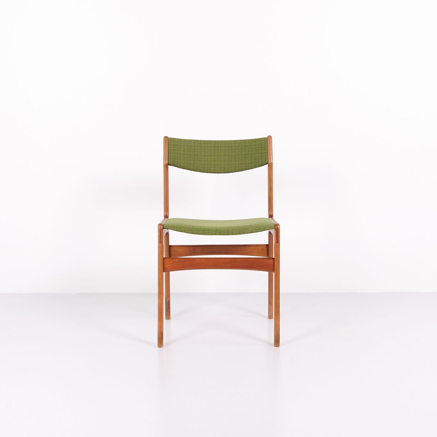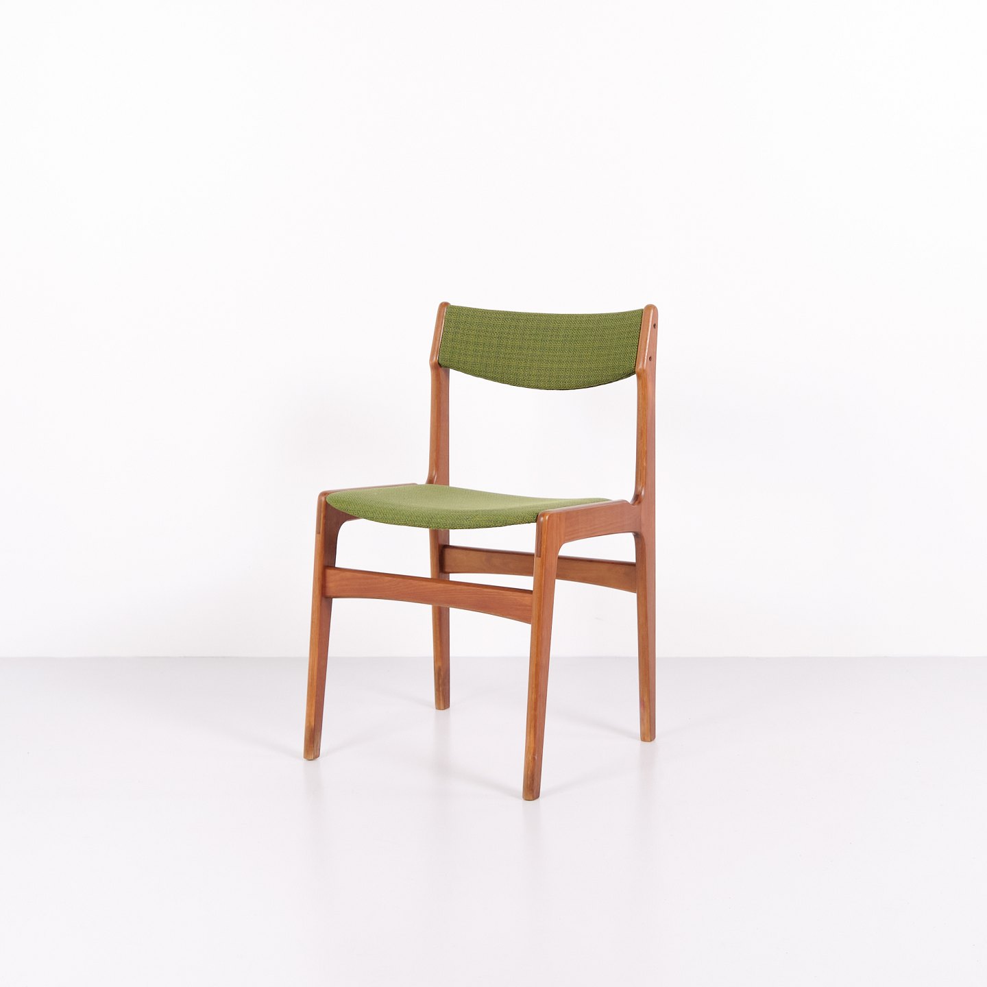 Chaise de salle à manger Erik Buch des années 1960 en teck et tissu vert. Design danois classique.