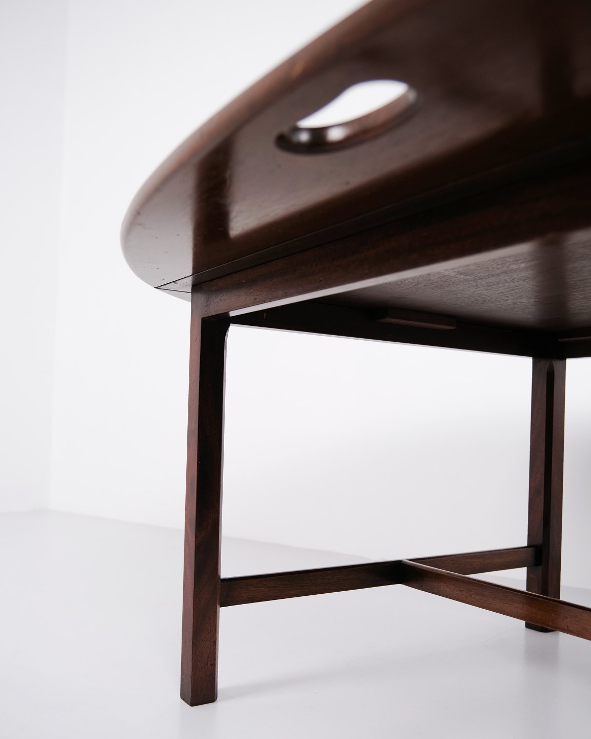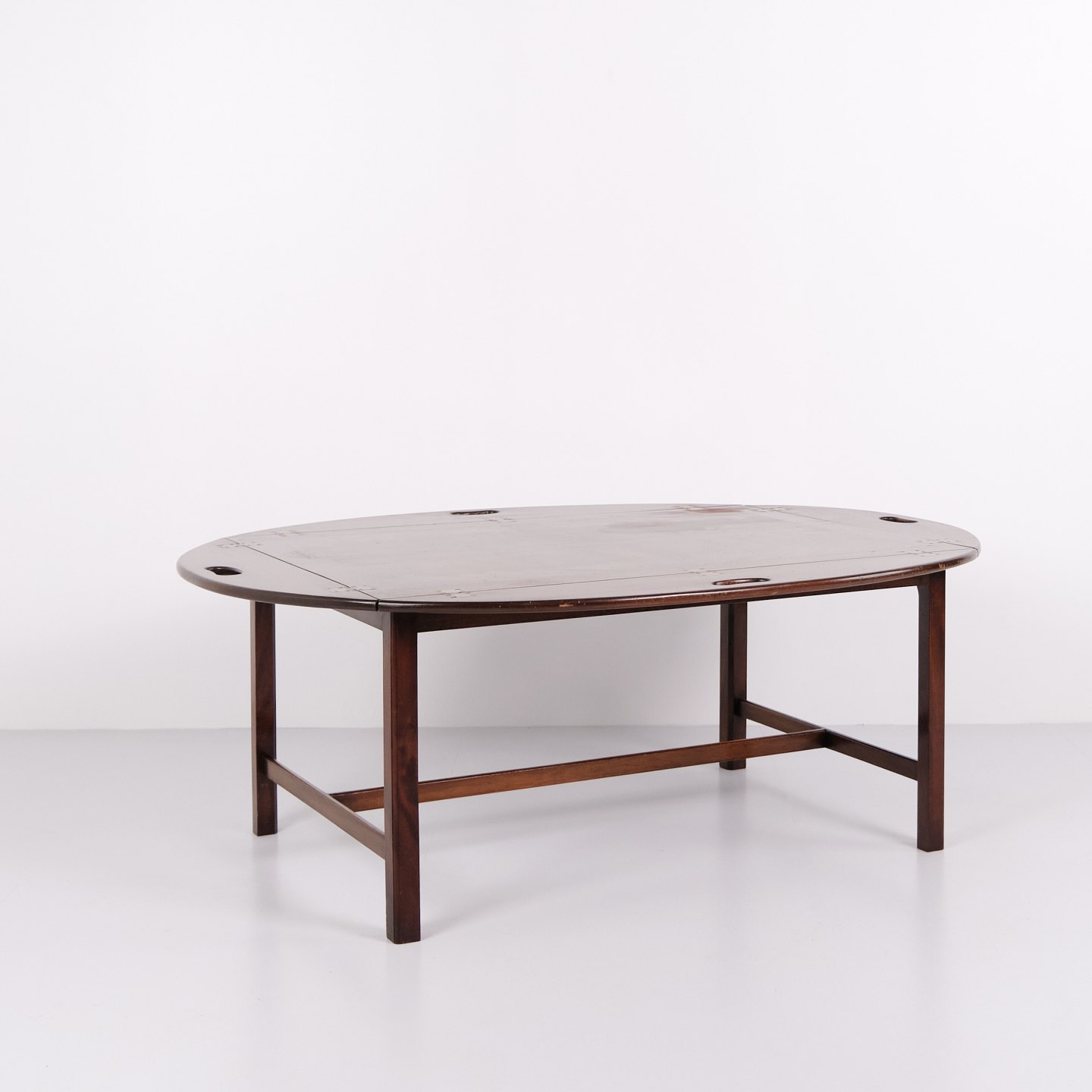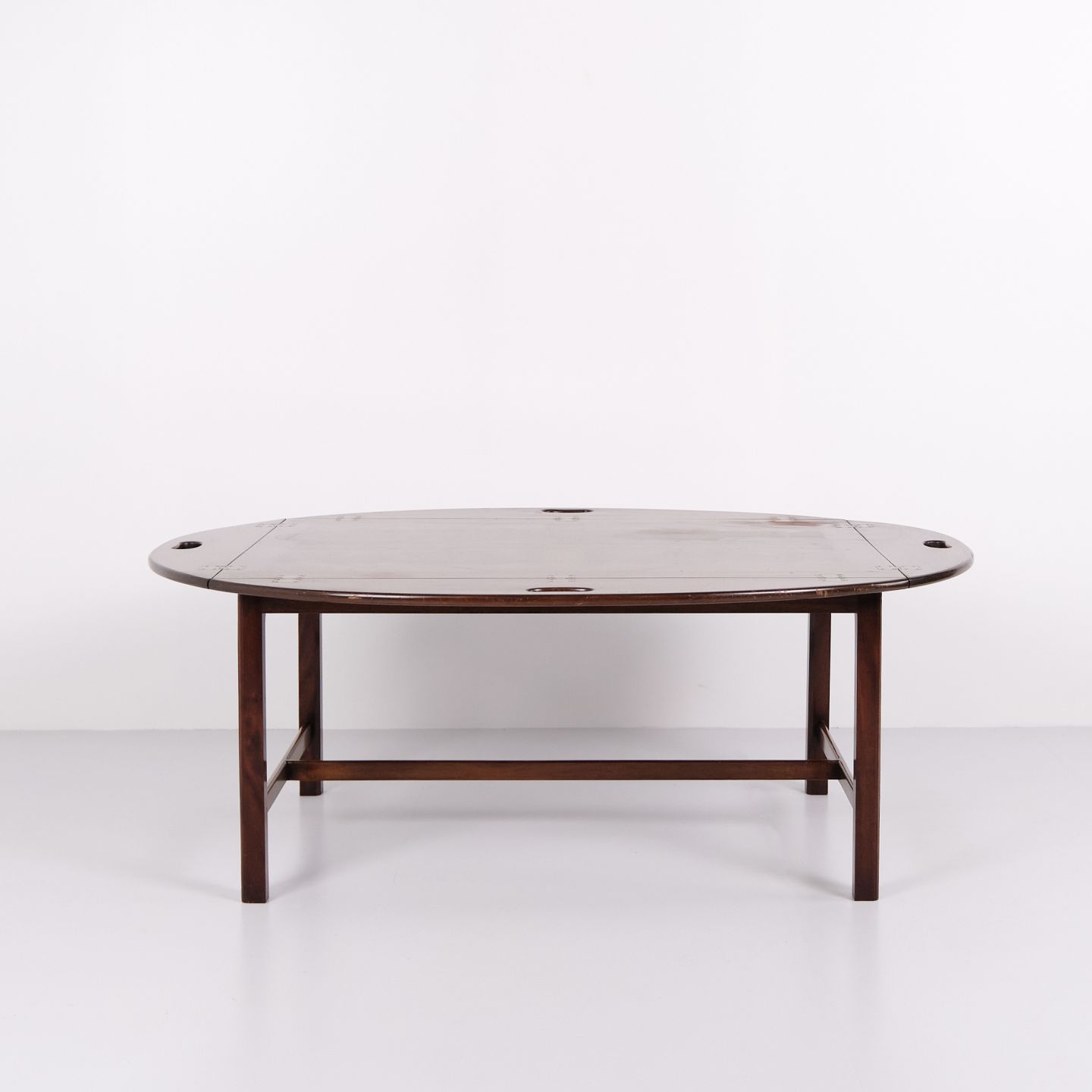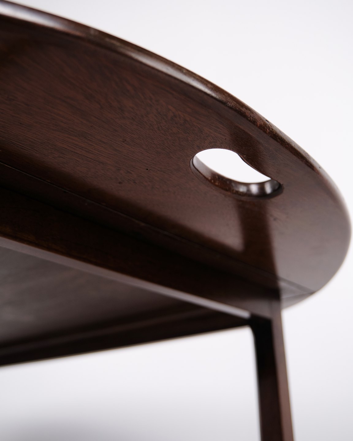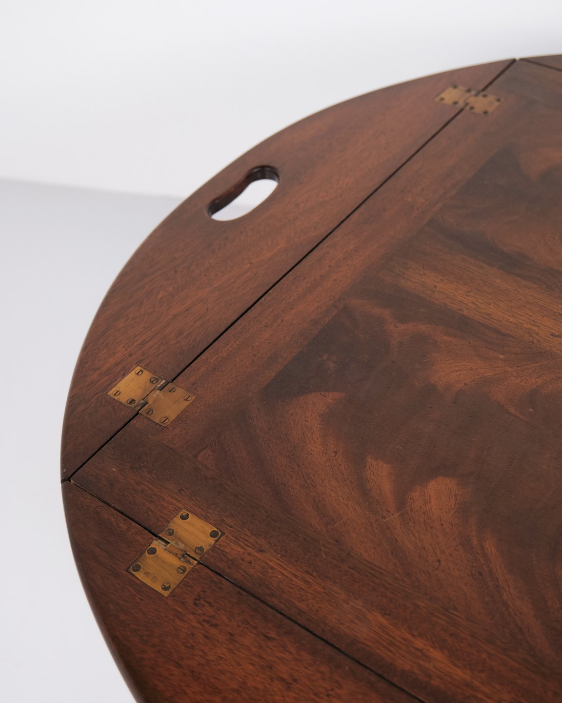 Table butler en acajou avec garnitures en laiton des années 1930. Design anglais avec une expression classique et une forme fonctionnelle.