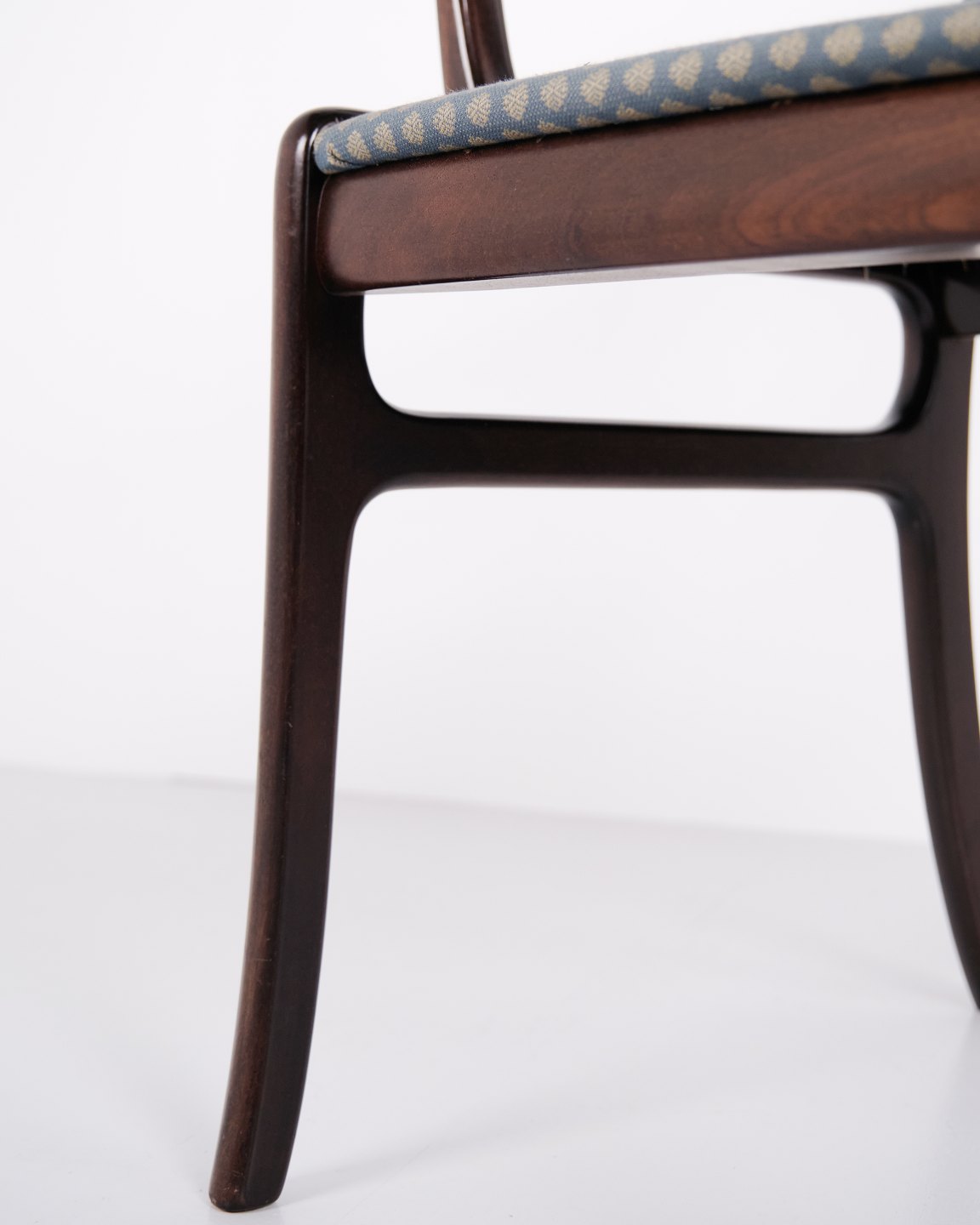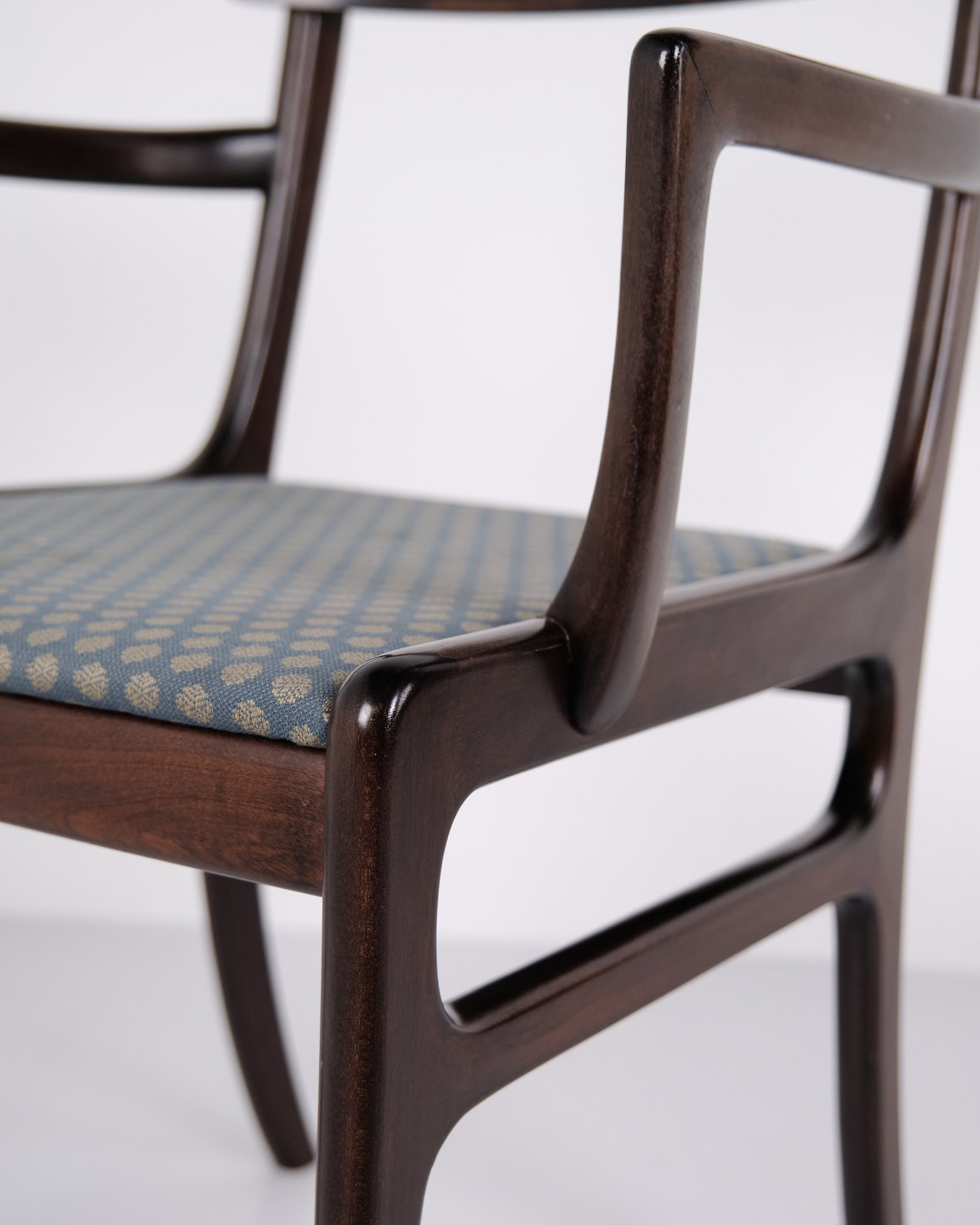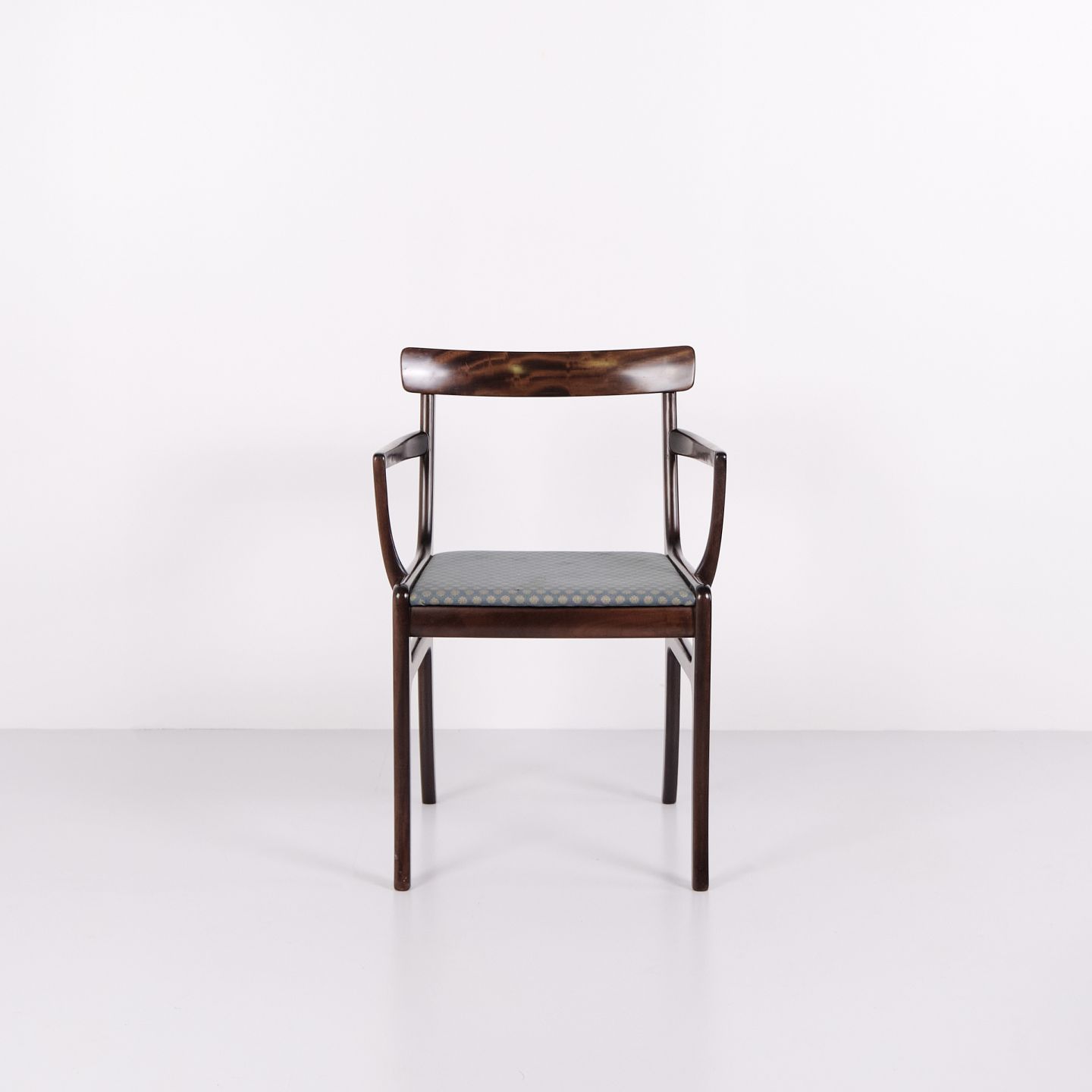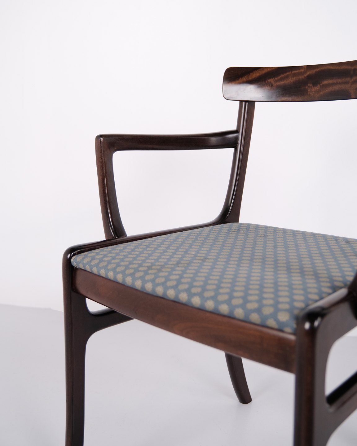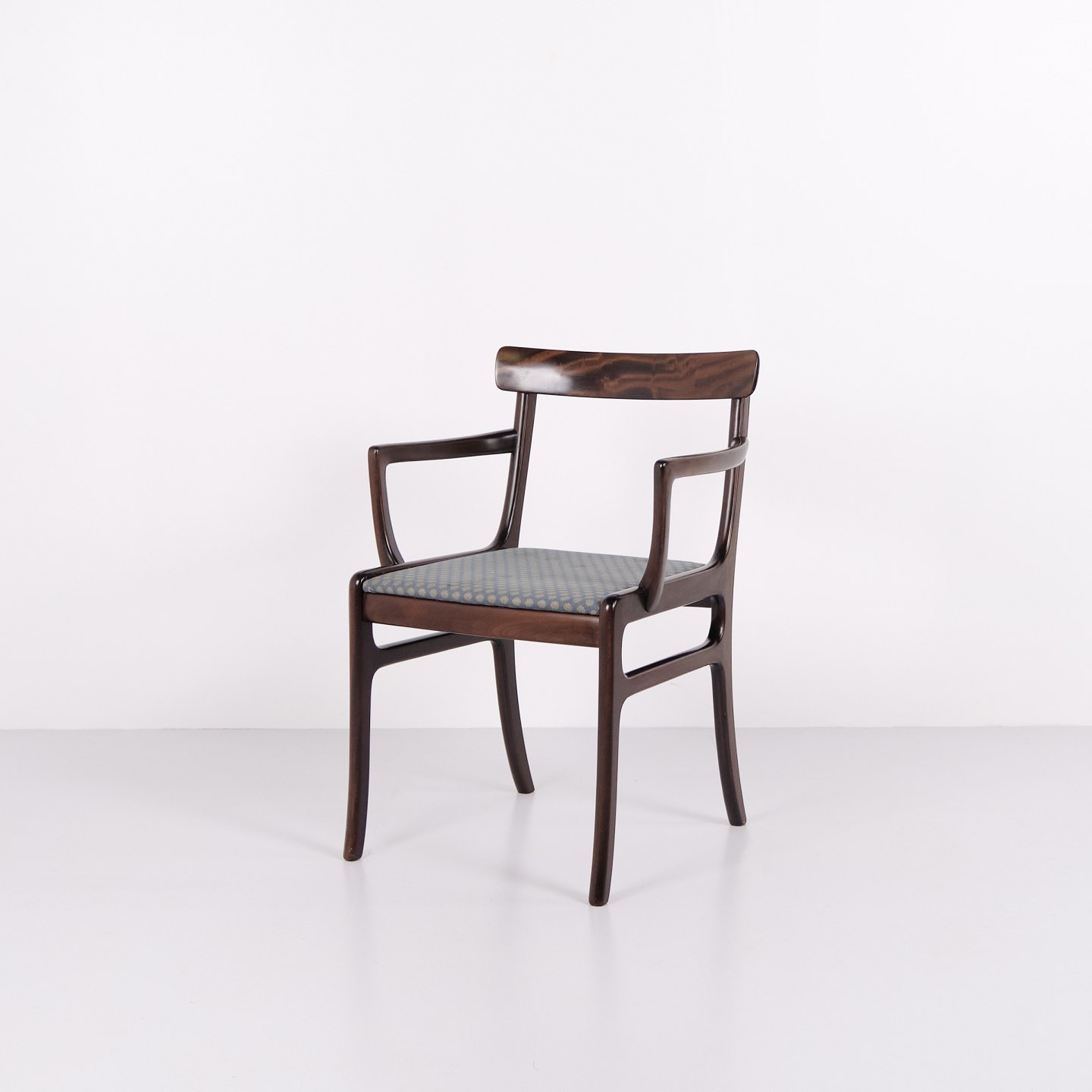 La série Rungstedlund fait partie des créations reconnues d’Ole Wanscher et montre son inspiration tirée de types de meubles historiques, qu’il a réinterprétés dans un style scandinave plus léger et moderne. Le résultat est un fauteuil élégant qui associe confort et grande qualité artisanale.
