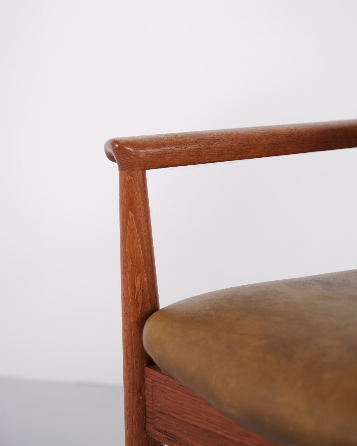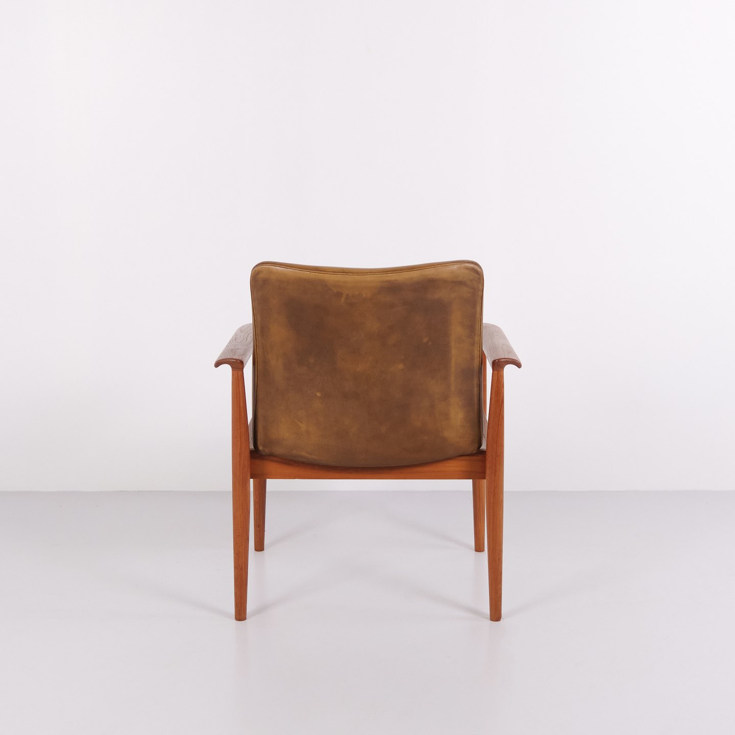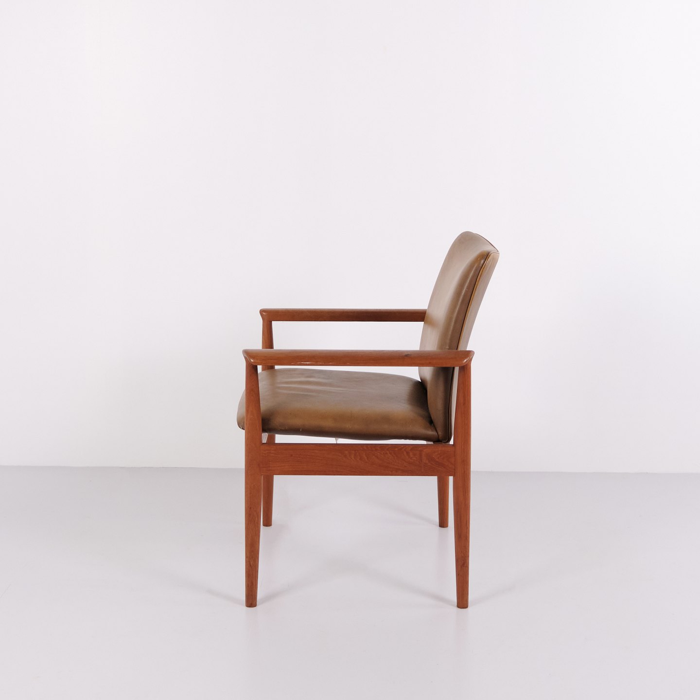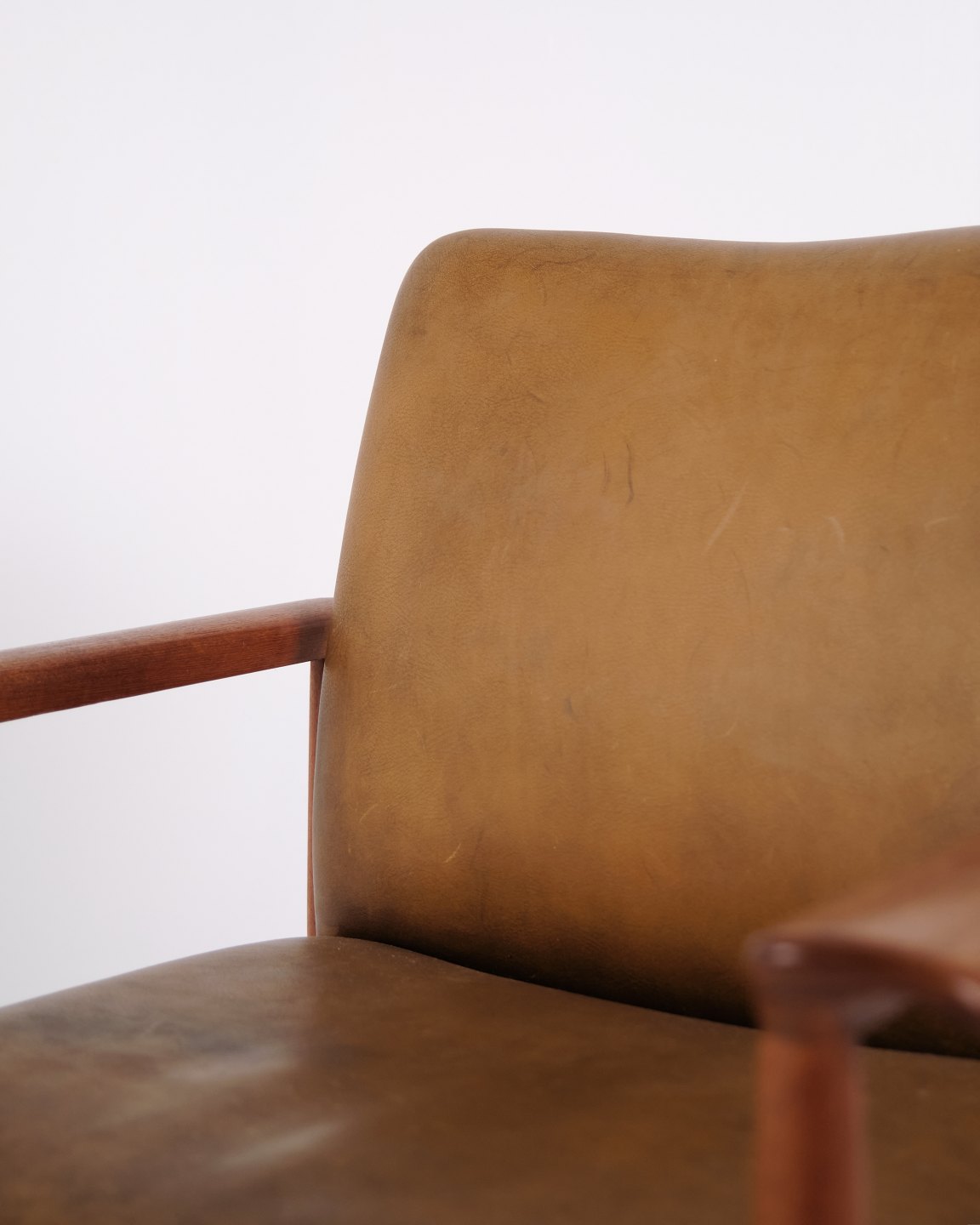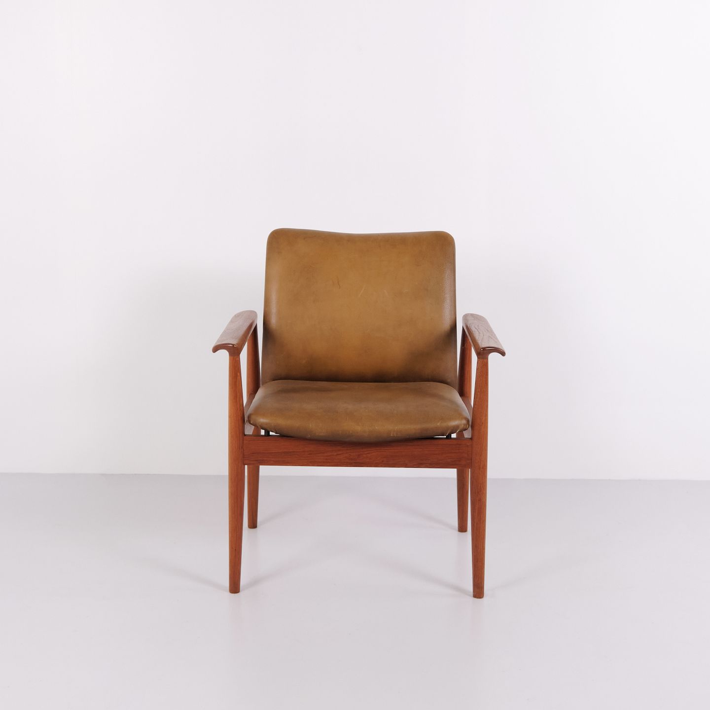 Fauteuil Finn Juhl Diplomat en teck et cuir patiné de France & Søn. Design danois des années 1960 avec un langage de forme iconique et sculptural.