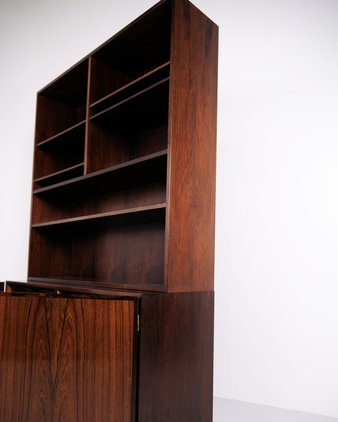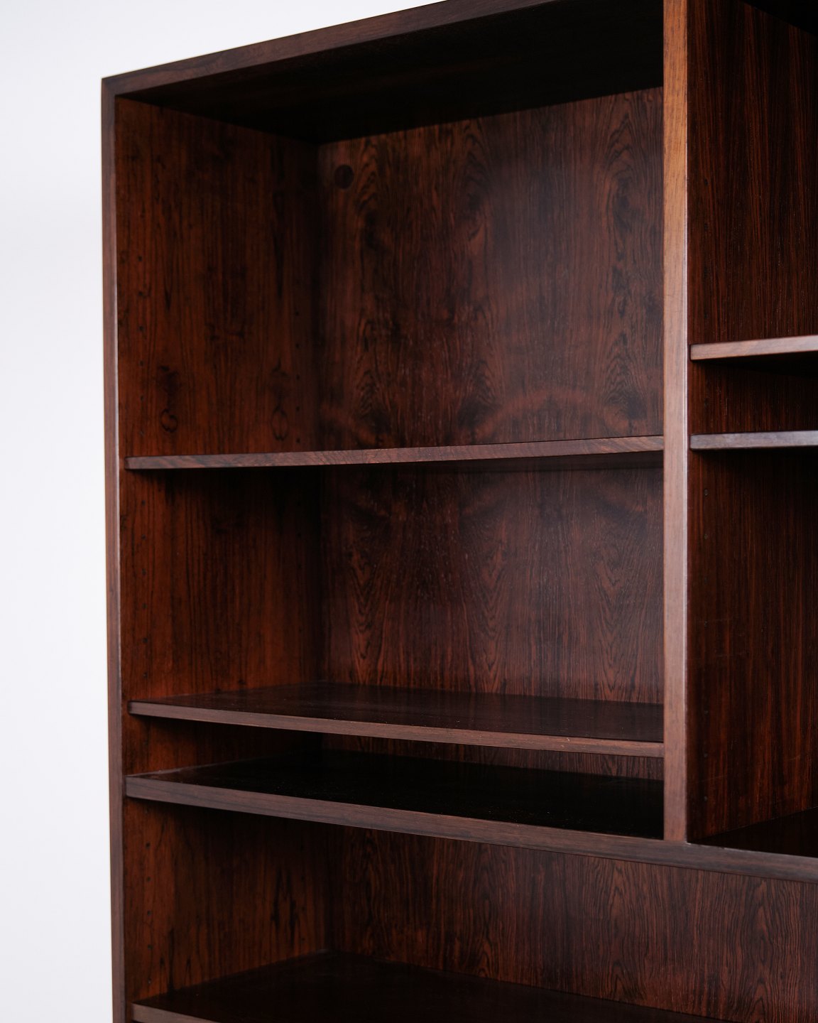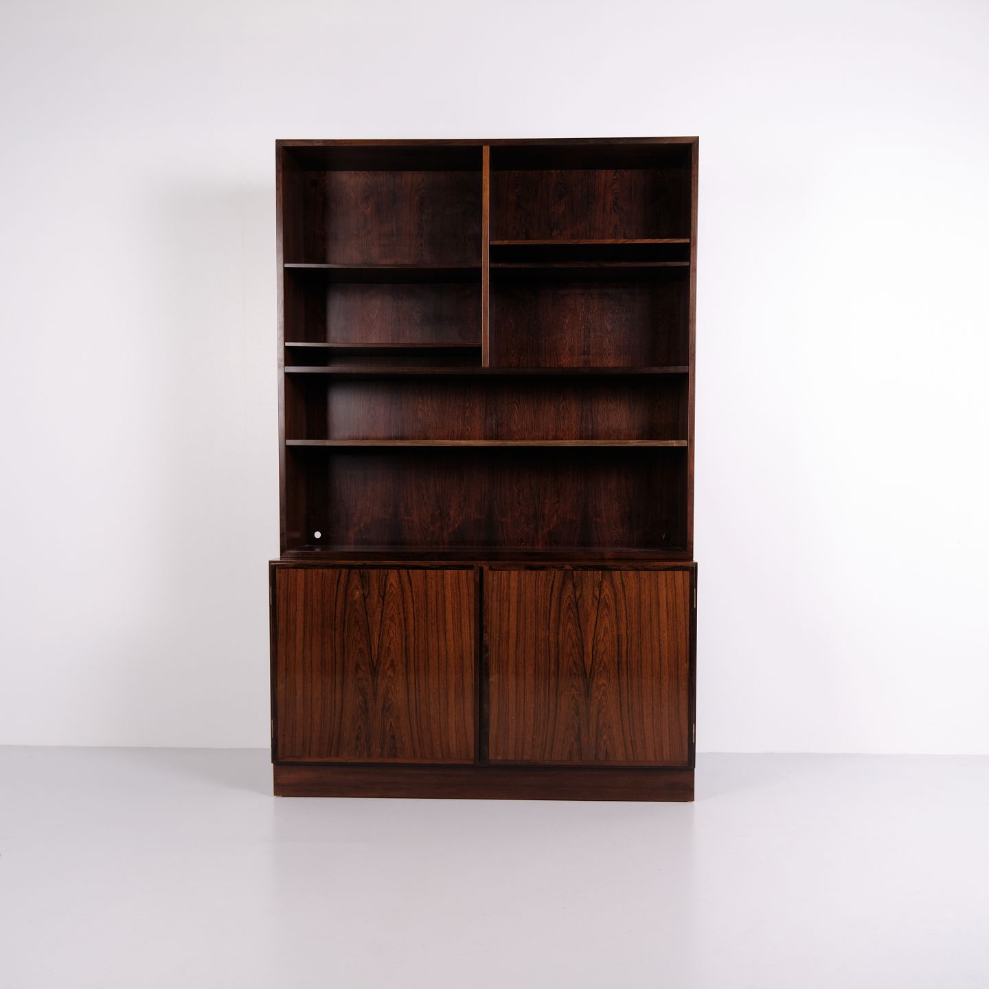 Bibliothèque, modèle 5, conçue par Gunni Omann et produite par Poul Hundevad au Danemark dans les années 1960. Le meuble est réalisé en palissandre et reflète les lignes épurées et le design fonctionnel caractéristiques du mobilier danois de cette période.