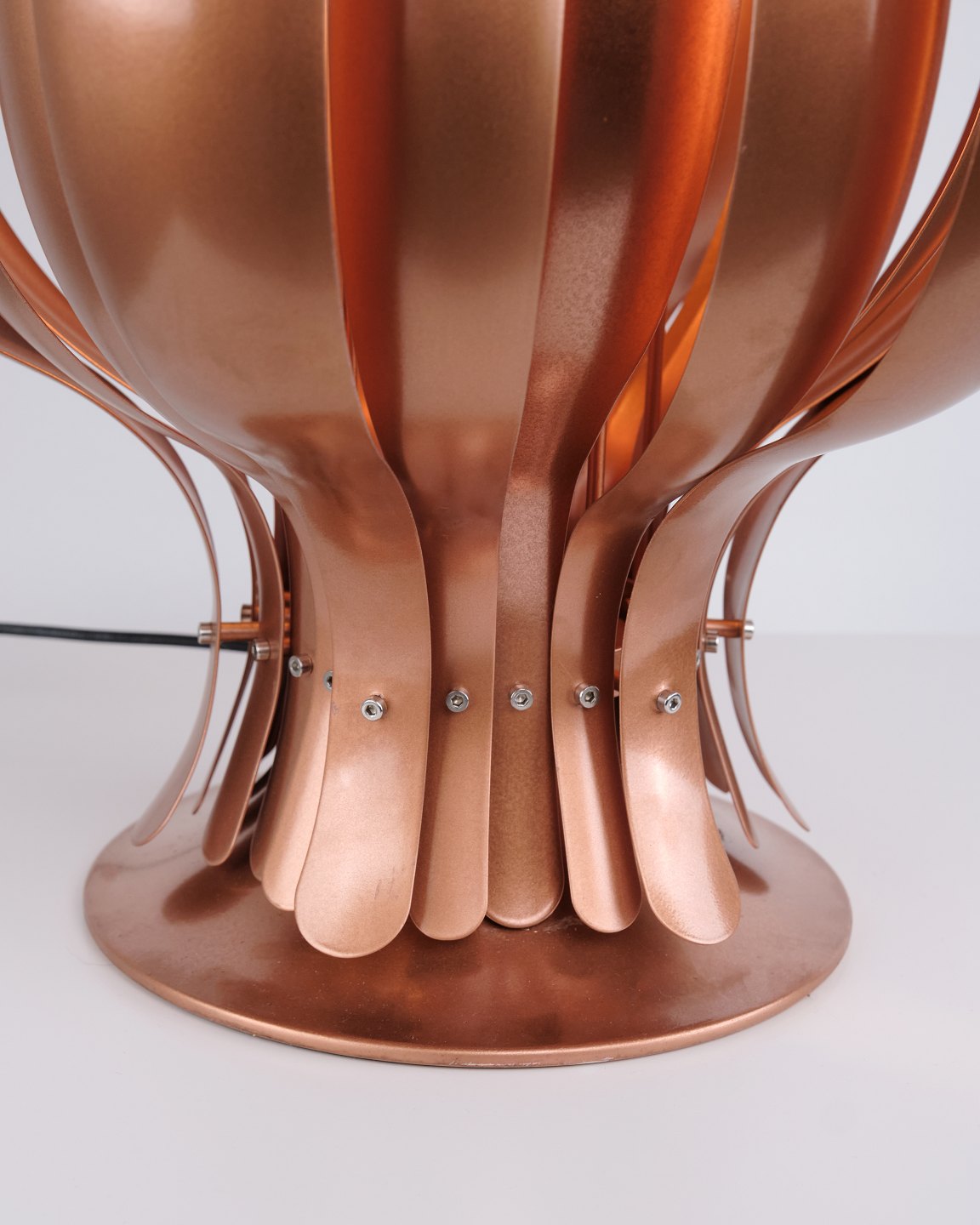Rare lampe de table Onion conçue par Verner Panton dans les années 1970. La lampe est réalisée en cuivre et se caractérise par sa forme organique et superposée, créant une expression sculpturale et décorative. La structure offre une lumière douce et chaleureuse, où les reflets du cuivre soulignent le caractère de la lampe.
