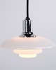 Suspension PH 2/1 en chrome avec verre opalin de Louis Poulsen. Conçue par Poul Henningsen avec un design d’éclairage danois classique et un éclairage sans éblouissement.