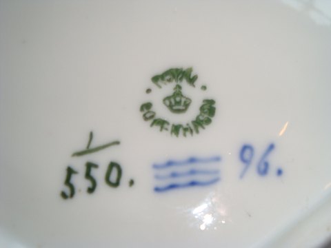 SolgtKgl bladformet kagefad i halvblonde musselmalet nr 550 mange andre dele på lager 5000 m2 udstilling
