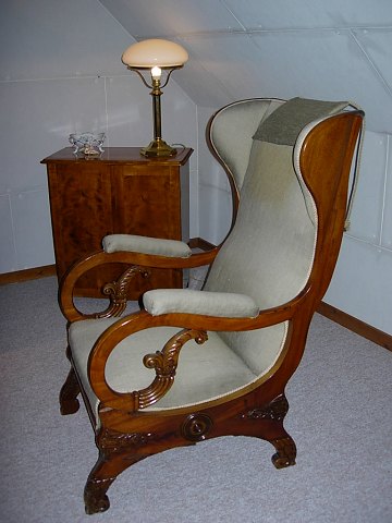 SoldWalnut sideboard / desk from Denmark decorated with carvings from the year 1880s. Refurbished.